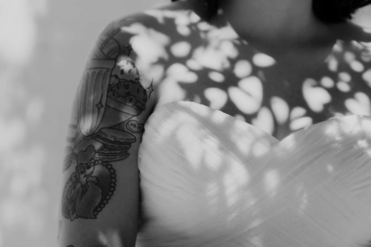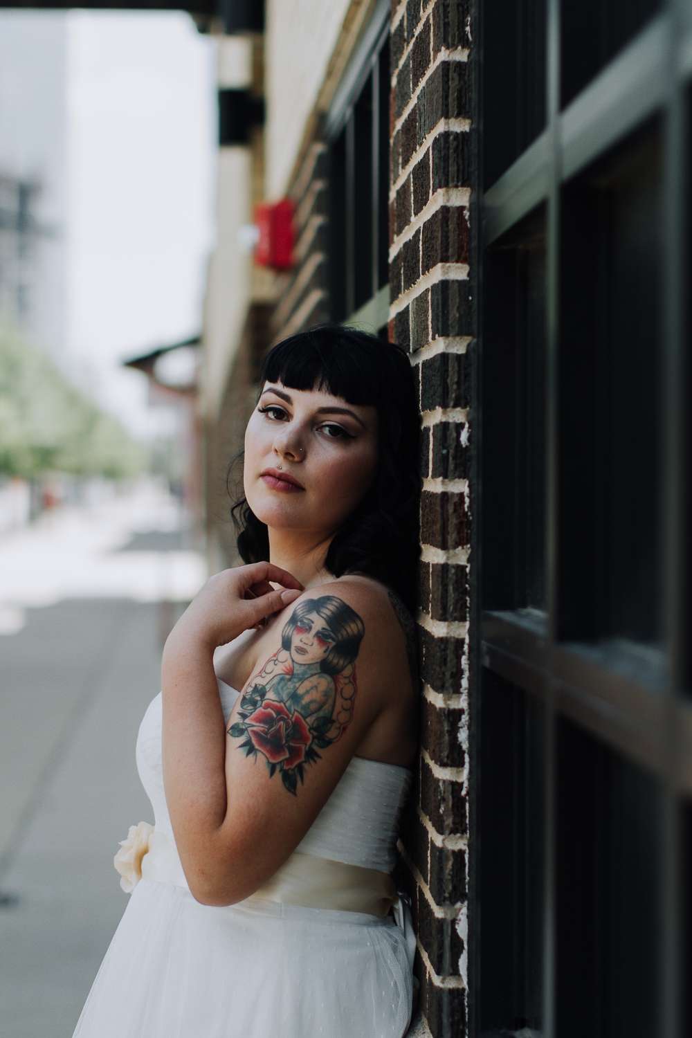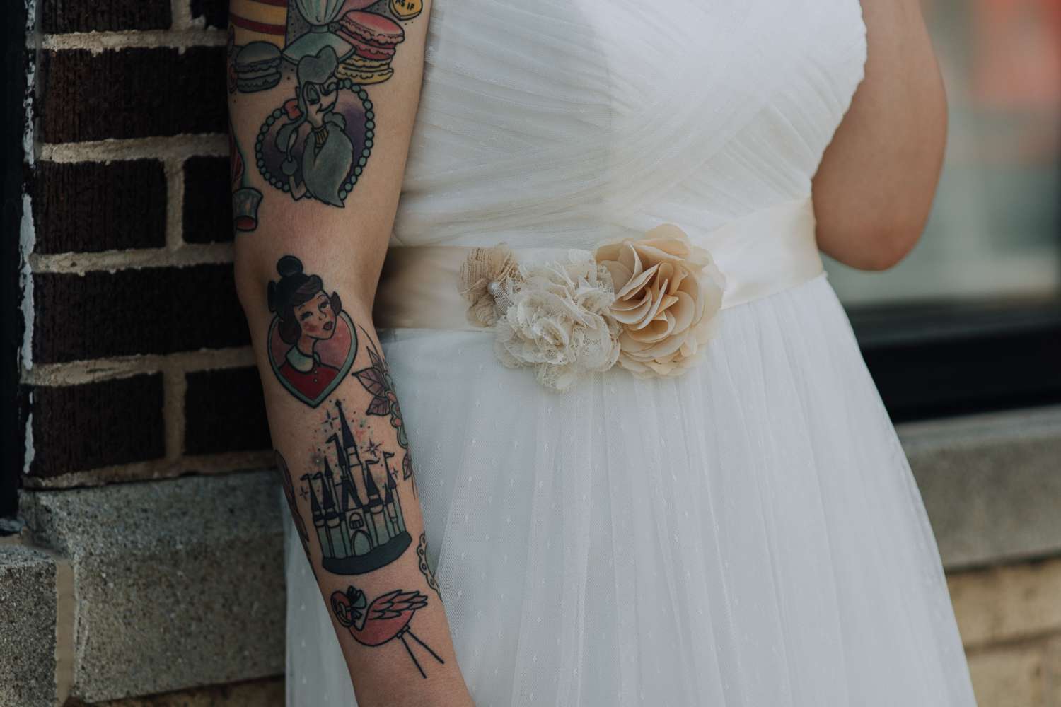 Describing the vibe, the bride said they went with “Simplicity. We didn’t want the big stressful wedding, we just wanted to celebrate us!” But there was room to also include the unique details, and she added, “I definitely think having our wedding on a Sunday morning with donuts and mimosas in a tattoo shop made us a little different!”