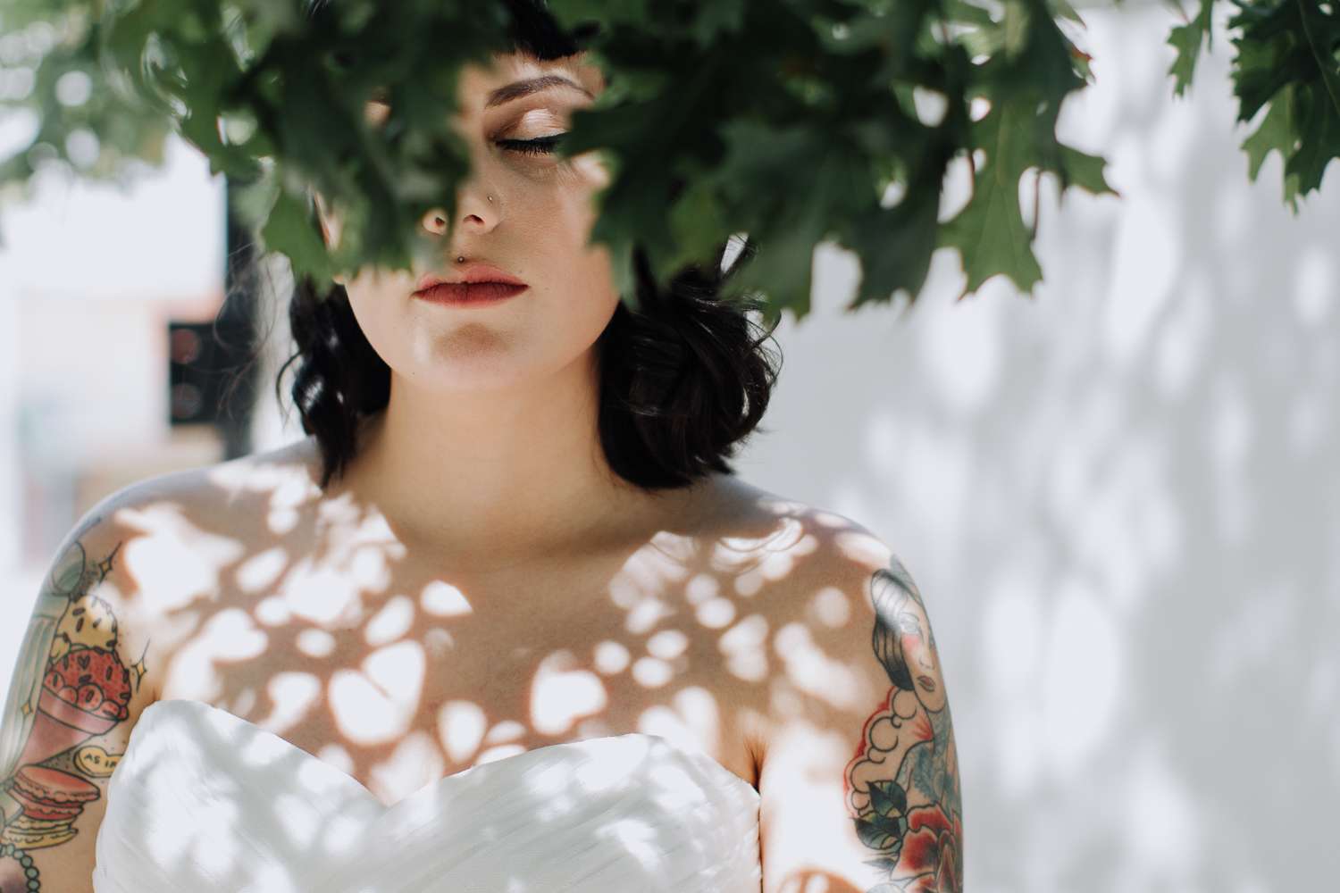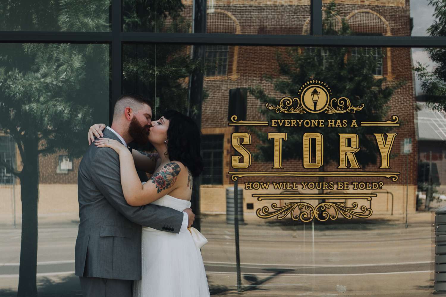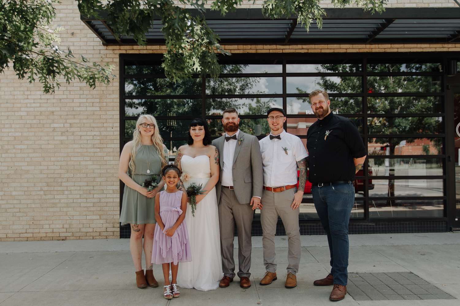 Raegan and Randy had their summer wedding at Blackmint Collective Tattoo Studio in Oklahoma City. It was the perfect venue as they and most of their bridal party and guests all have tattoos. There’s a real industrial feel to their day, with the venue’s exposed lighting rigs and brick walls dotted with modern art, all softened by details like pastel-glazed donuts and the delicate greens of succulents. It’s a look that says modern wedding with an edge, and it’s beautiful.