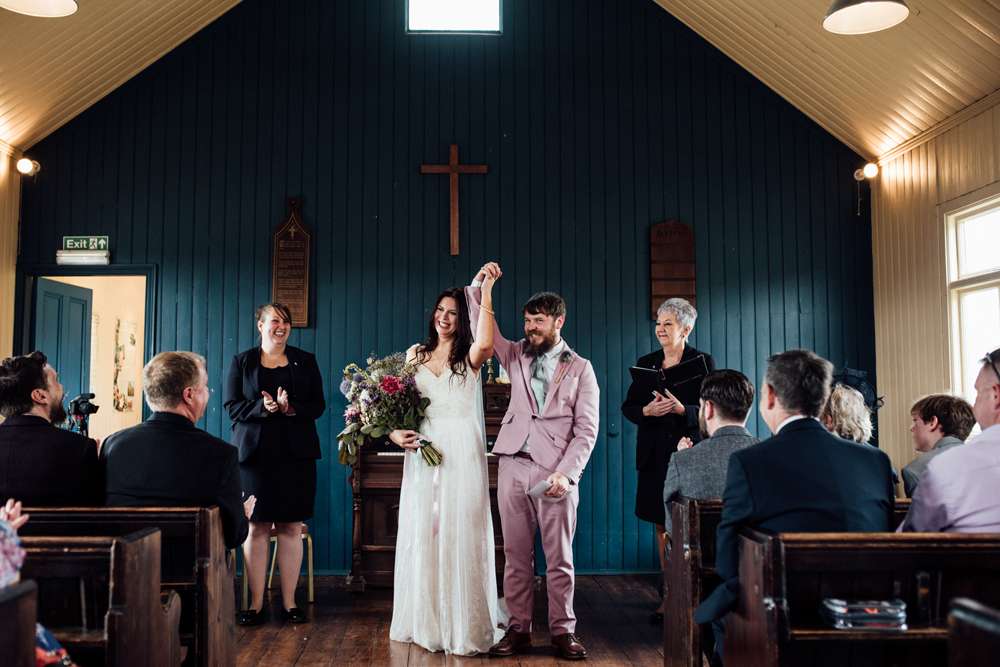 Despite all the effort they both made with the aesthetics of the wedding, the highlight of the day for them both was the ceremony. “I had anxiety about the thought of standing up in front of all of our friends and family for MONTHS before the wedding (even though I deliver presentations and group work for my job)” Emma said. “I was dreading it, but it actually turned out to be one of my favourite bits of the day. I thought I would bawl my eyes out during the ceremony but I only cried a bit in the tractor on the way up to the chapel. The ceremony just felt so RIGHT. I can’t explain it any other way, it just felt like absolutely the right thing at the right time and it was so natural.”