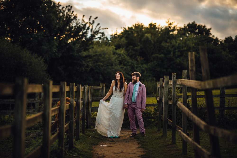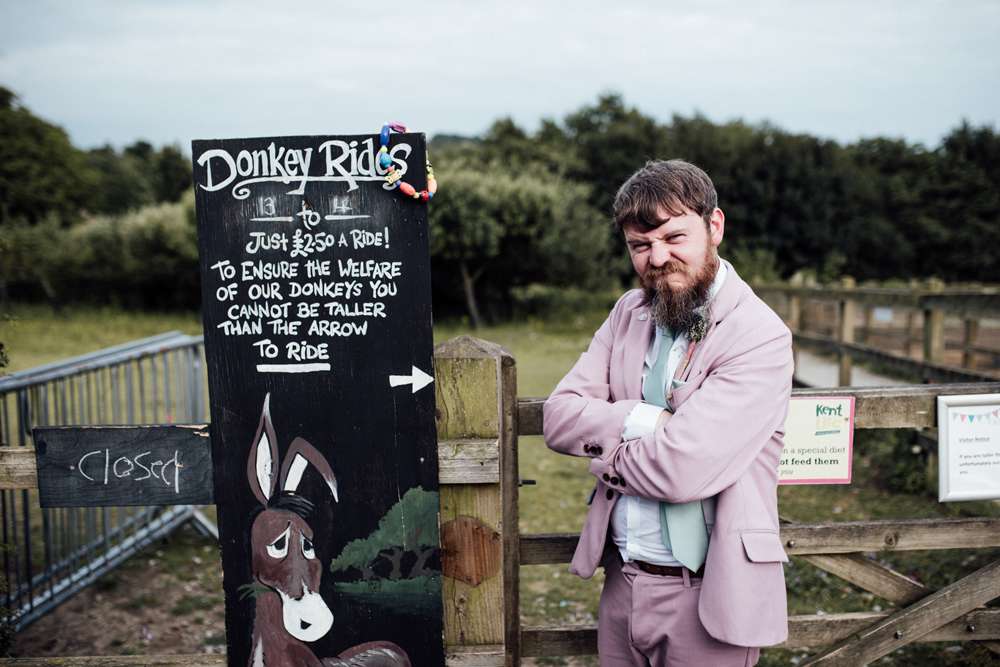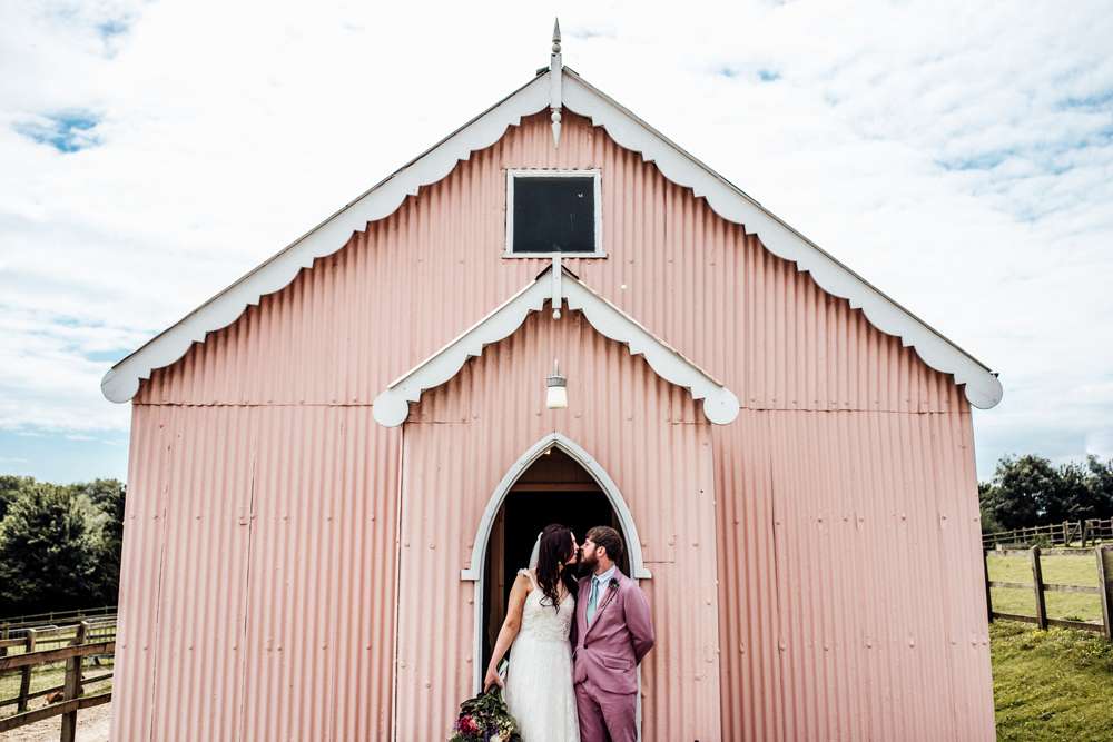 Emma and Jimmy’s Wes Anderson inspired wedding had a bit of a pink theme – from the groom’s suit (which he made himself!), the DIY flowers and even the chapel they were married in! Their summer wedding took place at Kent Life in Maidstone which is is a working heritage farm and museum.