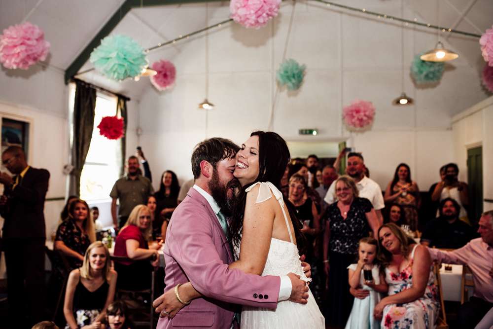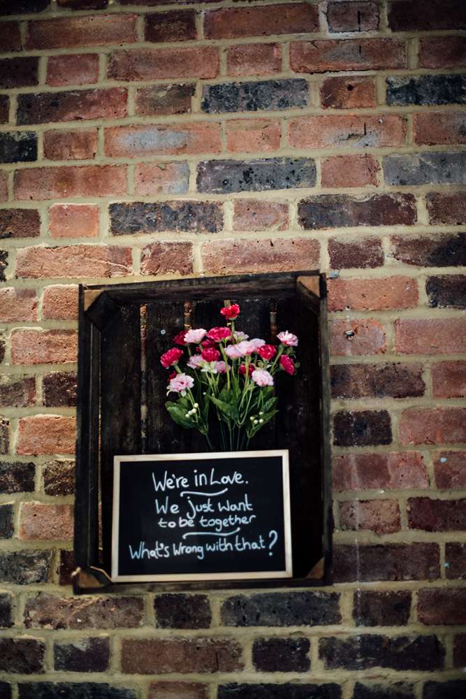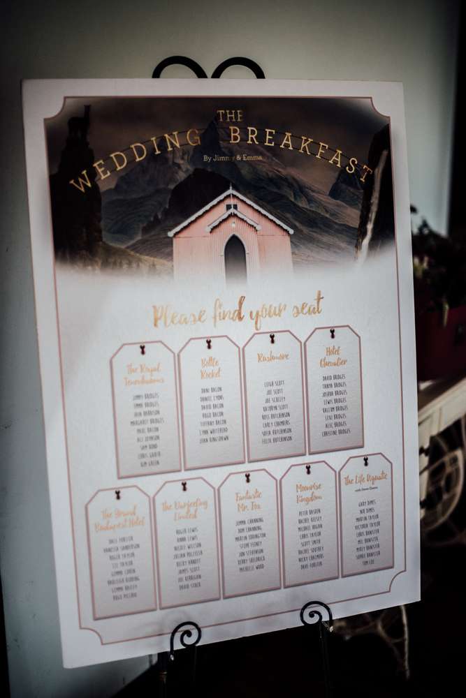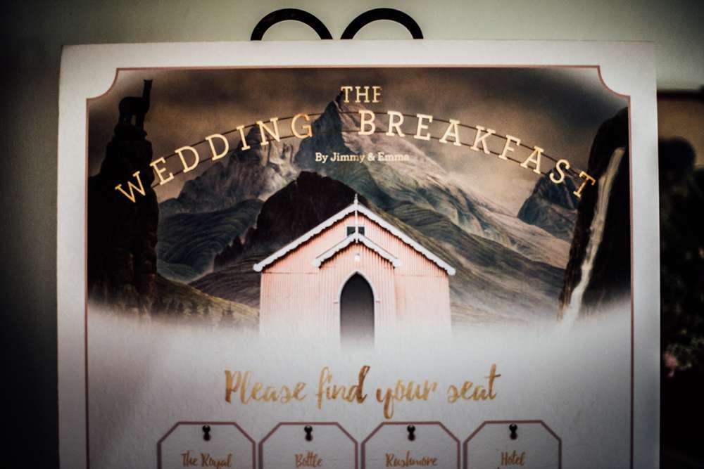 Their budget was £10,000 and one of the biggest cost saving exercises was all the DIY projects. The bride made the cake, she put the flowers together with help from her mother-in-law and some friends, and the groom designed the stationery. “Jimmy is a graphic designer so we worked together on what we wanted for the invitations and Jimmy brought them to life”, she said. “He always jokes that I’m his most difficult client! I really wanted our invitations to have foiling on the letters but we couldn’t afford to have this done professionally as we printed it all ourselves to save money. I researched a lot and found out we could do the foiling ourselves by printing in laser ink and using a laminator and heat reactive foil. It took ages and involved a lot of swearing at the laminator when it ate the card but we did it and we both loved how our invitations looked in the end. We received lots of great compliments on them, so much so that we’ve decided to open our own Etsy shop (Prints of Rochester) offering bespoke wedding stationery. We also designed enamel pins based on the pink tin chapel where our ceremony was and we had these made up. We included them with our invitations on a card that said ‘We’re pinning our hopes on you being able to attend’ – who doesn’t love good pun?!”