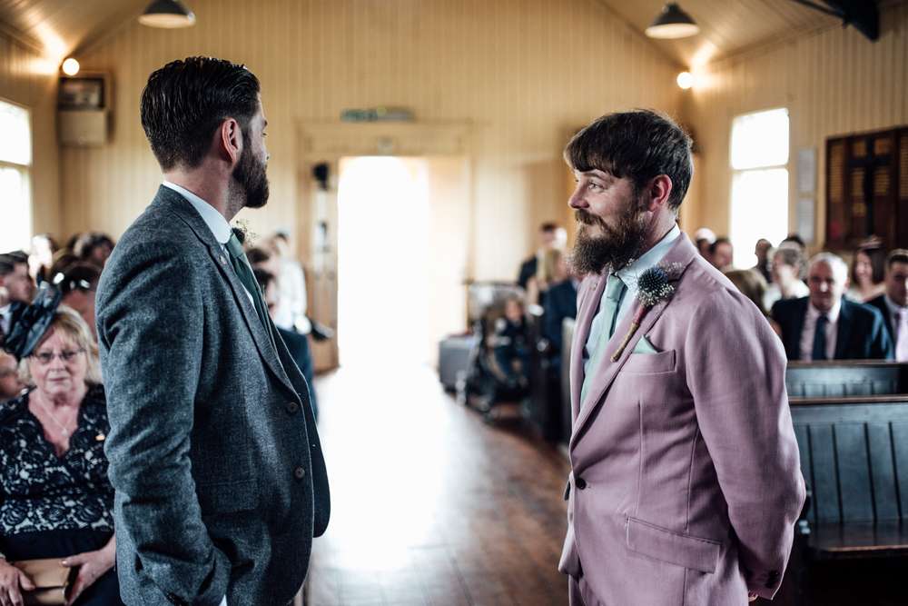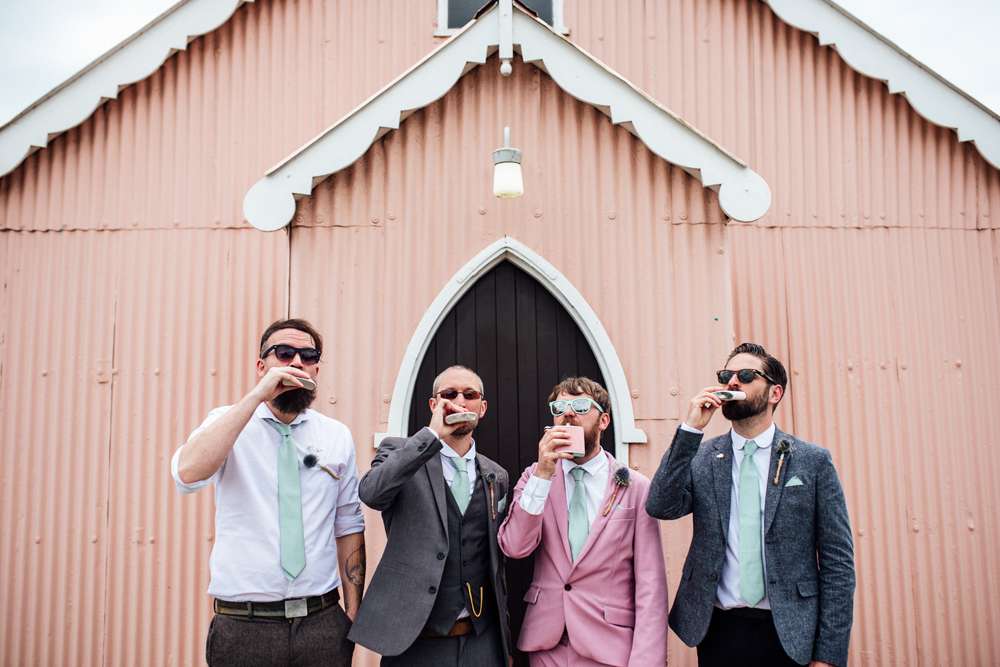 The groom actually made made his own pink suit! Jimmy explained, “I’m a fashion design graduate so I really had to make my own suit. I went for a dusky pink suit complemented with mint green tie, pocket square and lining to match our colour scheme. It was the first time I’ve ever made a suit as I’d previously only ever worked in women’s wear, but the creation went pretty smoothly without much stress at all.”
