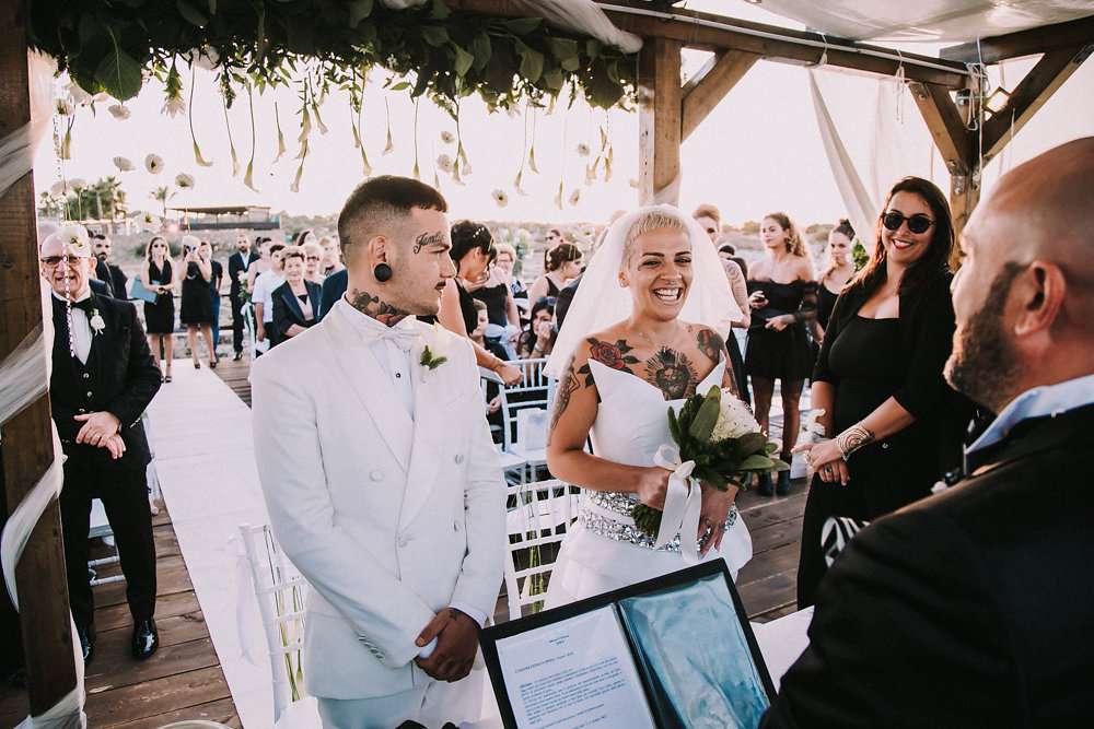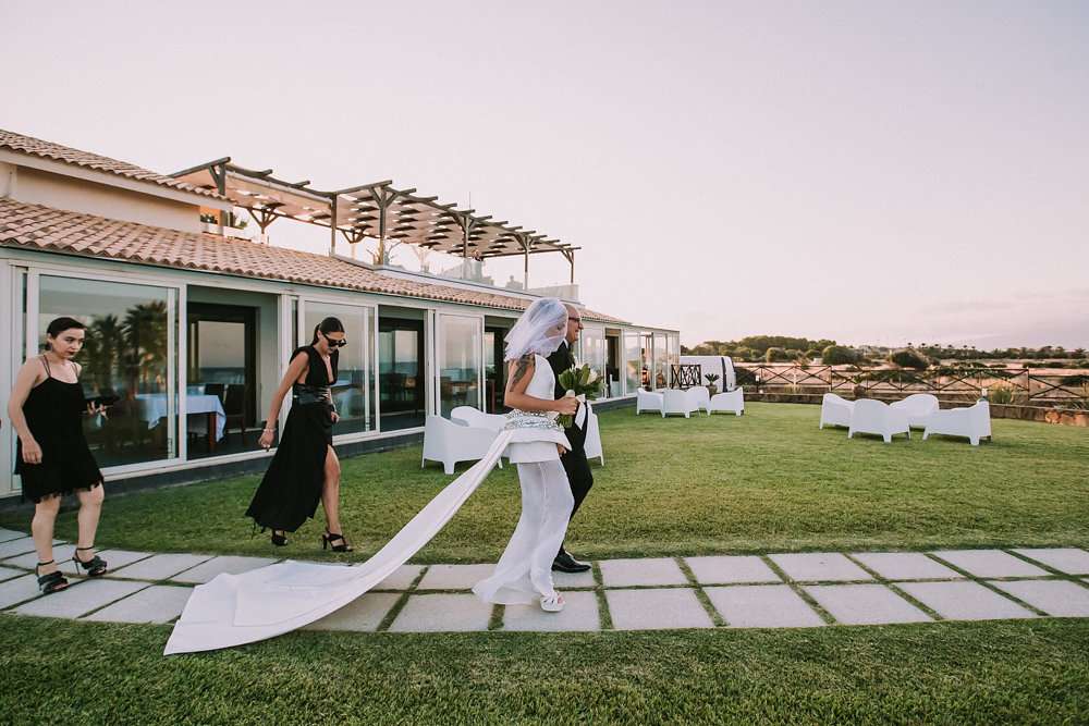 The key words for this wedding are light, magic, and style. With their guests dressed in black, and the couple both in designer label white, plus having Mount Etna and the sea as their view, Giuliana and Buccio pulled off a frankly stunning looking day.