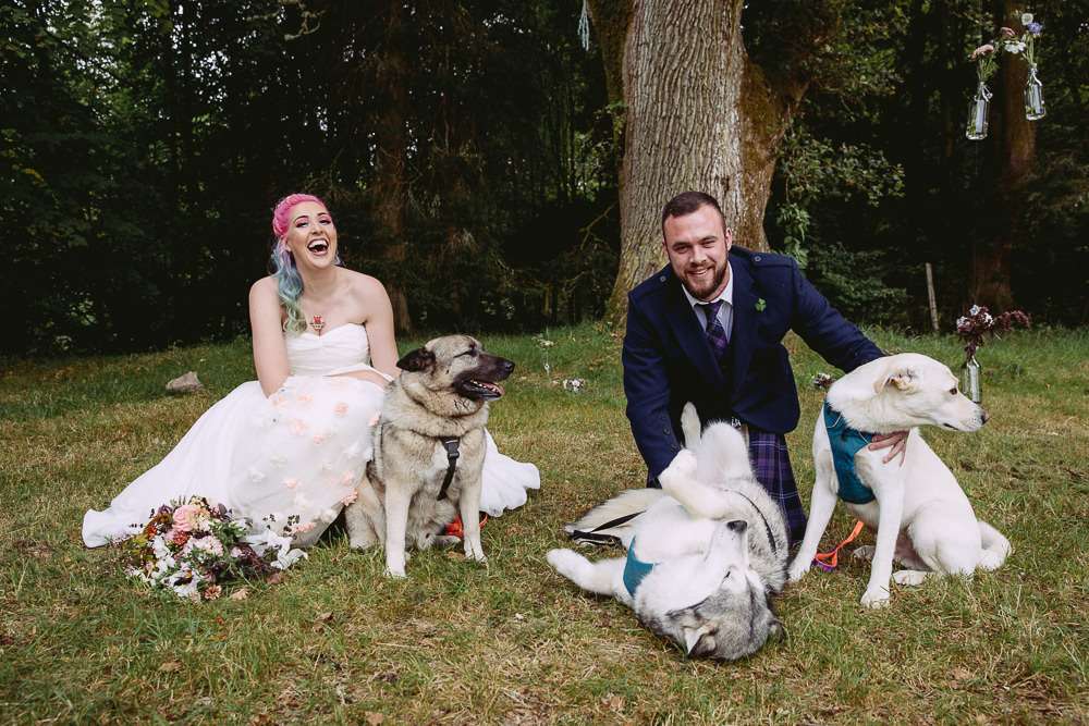 Both lovers of nature and being outdoors, Katie and Andy wanted their Scottish wedding to have a really natural feel. It was also really important to them that all their guests were relaxed and that the venue they chose could accommodate everyone they wanted to invite – including their four legged fur-babies!