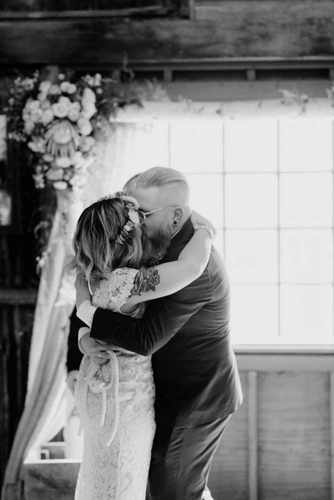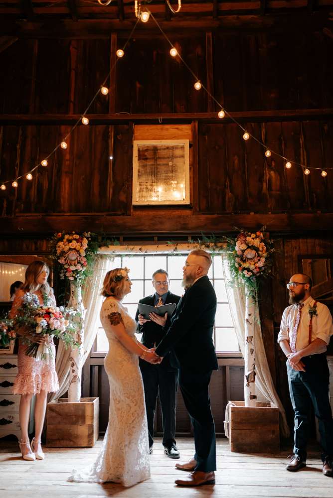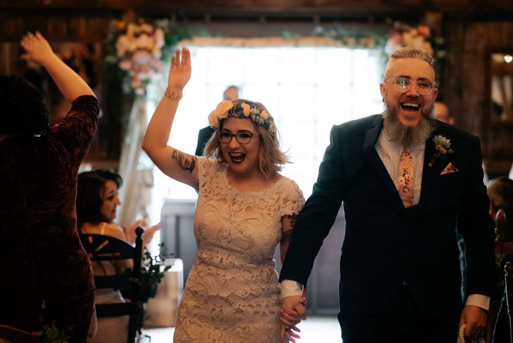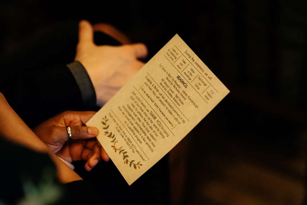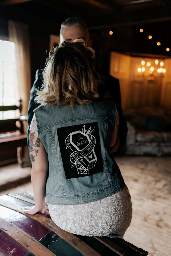 The ceremony was lead by one of the bride’s friends and was their favourite part of the day. “A long-time friend of my family was our officiant”, she said. “He wrote and delivered the most beautiful ceremony script, and because he knew us on a more personal level, he was able to keep the entire ceremony relaxed and fun, which was exactly what we had envisioned. It was important to us that our ceremony be lighthearted and not overly stuffy or traditional, since that is not who we are. I walked down the aisle with my mother to Bikini Killʼs Riot Grrrl anthem; Rebel Girl, and I donʼt think it gets much more unconventional or bad ass then that!”