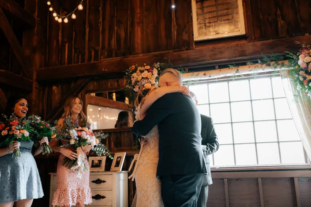 They were married in New Jersey at The Loft at Jackʼs Barn. “As music was the glue that held all of our wedding plans together, it is only fitting that the inspiration for our wedding would be an album”, she continued. “The Bouncing Soulʼs 1999 album Hopeless Romantic was the inspiration for our wedding. Youthful, care-free, alternative, and fun, but still romantic in itʼs own right.”