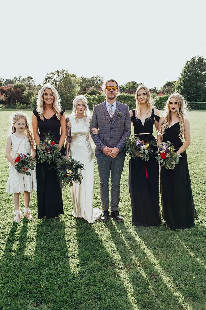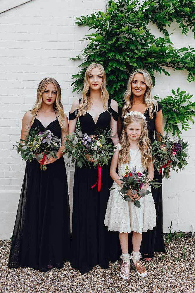 “Its really hard to say what our theme was, but I’d picked myself an original vintage 1930s dress which had a gold hue to it so I also started choosing other gold bits”, began the bride. “I already knew I wanted my bridesmaids in black which meant I could put anything with it, so I just kept going with things I was drawn to and some how on the day it all tied in together.”