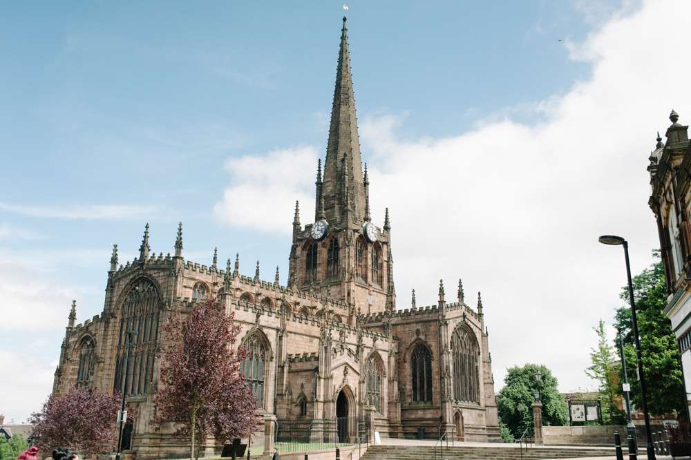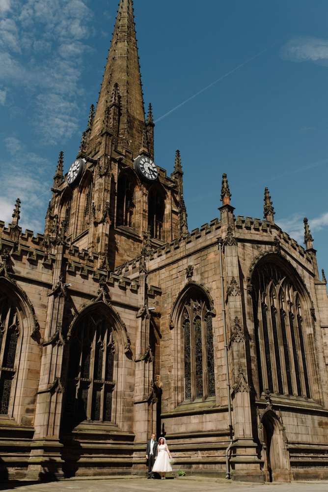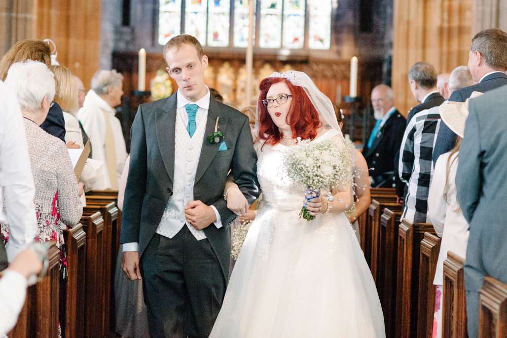 They were married at Rotherham Minster Church. “My husband is an atheist and I was brought up Catholic”, Helen began. “I felt it was important for me to be married in a Church and Aaron respected this. The Church of England was happy to accommodate our different beliefs. The ceremony was laid back and very entertaining … especially when Reverend Bruce pulled out his surprise tambourine. We walked into the church the organ playing the Imperial March from Star Wars and left as the organ played Always Look on the Bright Side of Life from Monty Python.”