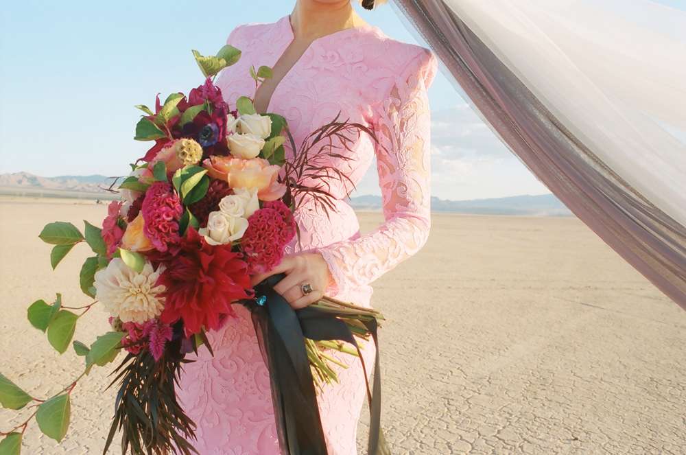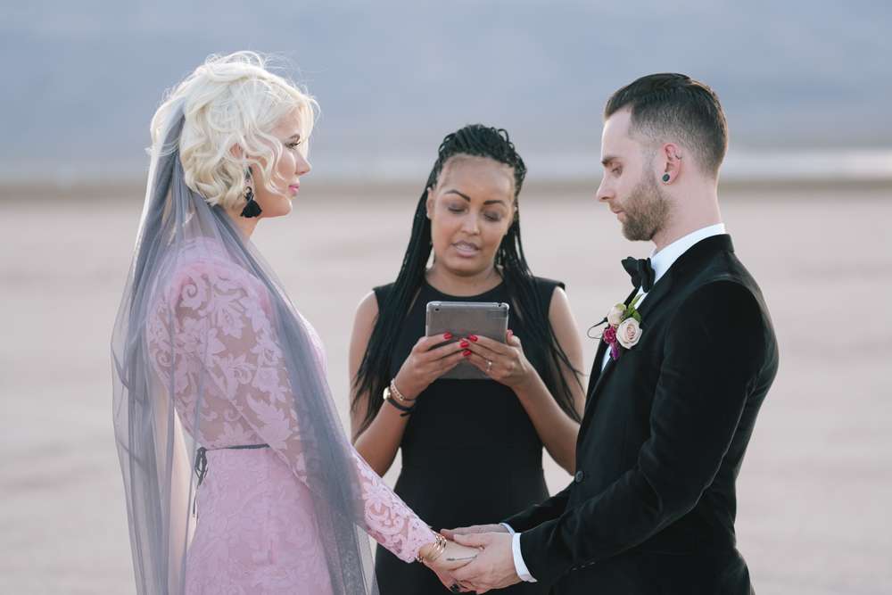 Photographer Andi, one half of Pure Light Creative, said she loved this free-spirited, go-with-the-flow couple. “I think my favourite thing upon meeting them was when I asked Amie how she decided on her pink dress, she told us that she had planned on wearing white but on arriving in Las Vegas, she last-minute picked up that beautiful pink number because she felt that it was more ‘her’. I was like ‘okay this chick rules’!”