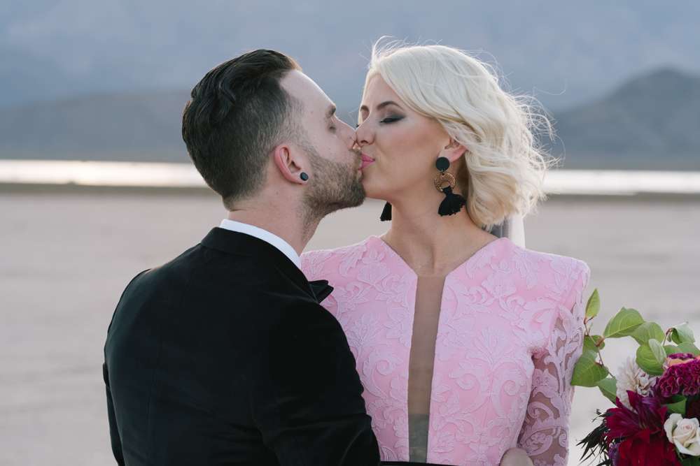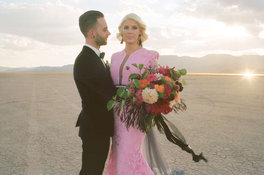 If you look up Rock n Roll in the encyclopaedia of life, you might just find a picture of this couple and their wedding. Eloping to Las Vegas from Australia, and donning a bubblegum pink dress and a sharp suit, Amie and Ben said their ‘I dos’ on a dry lake bed, before eating at a burger joint and finally heading off to get tattoos. Romantic, sexy and effortlessly cool, or what?