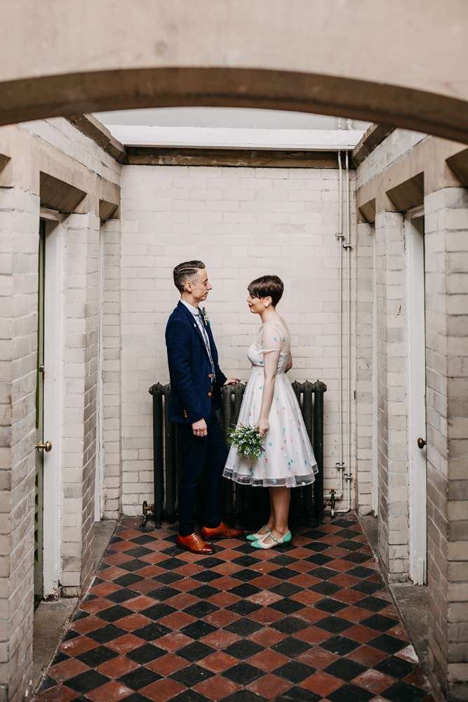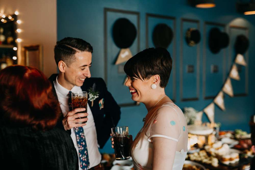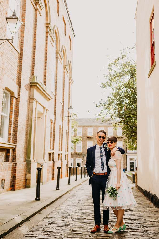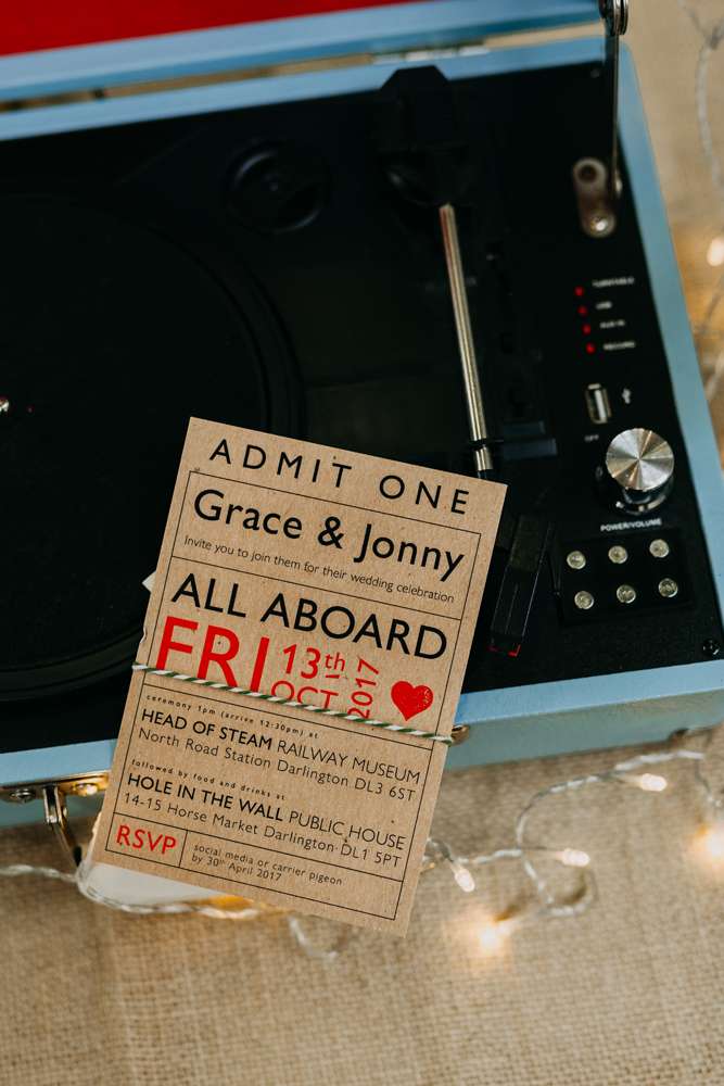 The ceremony was held at Head of Steam Railway Museum with the reception at a local pub. “I think getting married in a Railway Museum, which is still currently a working station was unique”, Grace continued. “It was bizarre stepping outside and seeing people waiting for the next train. We decided to enter together over the railway bridge, which crossed over tracks. We absolutely adore vinyl and 60s music, so it was only right we entered to The Kinks singing All Day and All of the Night on record. From there our ceremony was very simple with no readings and just the basics, as we both don’t enjoy being the centre of attention. We also had a pop up bar in the old ticket office, asked out guests to exit through a gift shop and insisted we had some of our photos in the Victorian toilet exhibition!”
