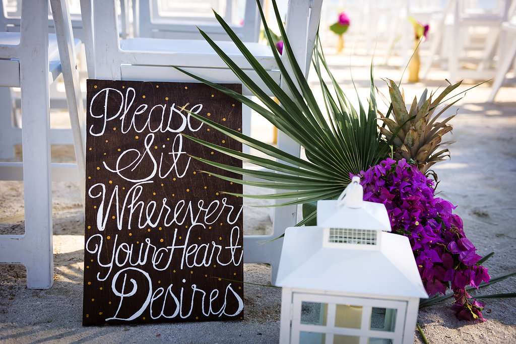 After the ceremony and their portraits on the beach they had a party vibes reception which they did all the decor for themselves. “We did A LOT of DIY projects. We and our friends made the majority of the décor including the table runners, the vases (we cleaned and spray painted more than 120 glass bottles for them) and made signs, props and we went foraging for the greenery for the vases.”
