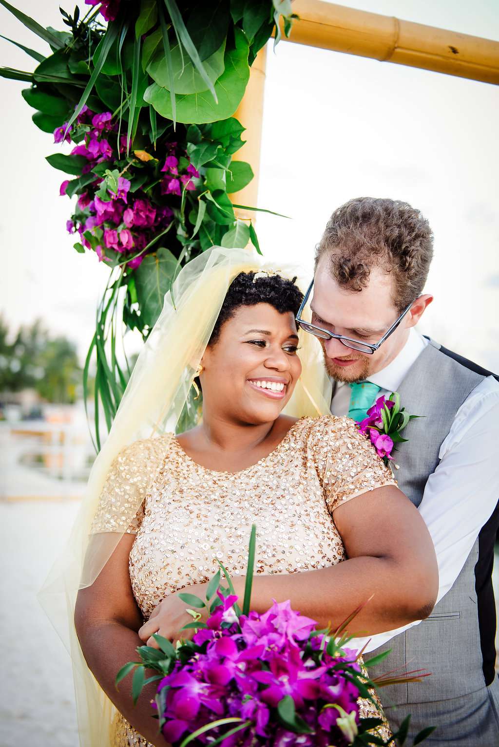 “The biggest cost of their $30,000 budget was the food and drink but they saved by doing all the DIY decor. “Colin and I spent a lot of time at Kaibo, our venue, when he first moved to Cayman so it felt like the perfect fit. We were also lucky that they are a full service restaurant and bar so they were able to do all of our catering in-house. We had a massive buffet of Caribbean comfort foods that included veggie, vegan and gluten free options as well as a mini dessert bar and a cocktail bar. Everyone was still raving about the food for weeks after. Our second biggest expense was photography and it definitely paid off. Jenna is amazing and we couldn’t be happier with our wedding photos!”