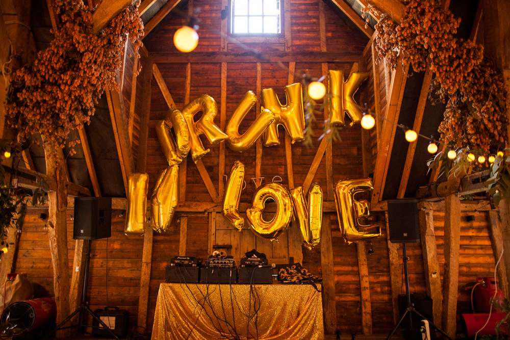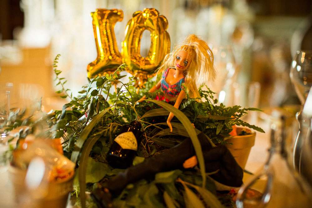 “The first decision we had to make was whether we hired a warehouse or barn and created the party ourselves, or paid a venue to”, Becky explained. “We’re both incredibly lazy so the latter it was.” Their styling was laidback, but had impact and included incredible balloon décor, a neon feature that hung behind the top table, and foliage filling the venue and the pagoda. All this nestled nicely amongst the venue’s already colourful features (think an elegant urban barn, not twee and twinkly). As well as being responsible for the foliage, Styling by Jessica also helped with making the centrepieces and signage.