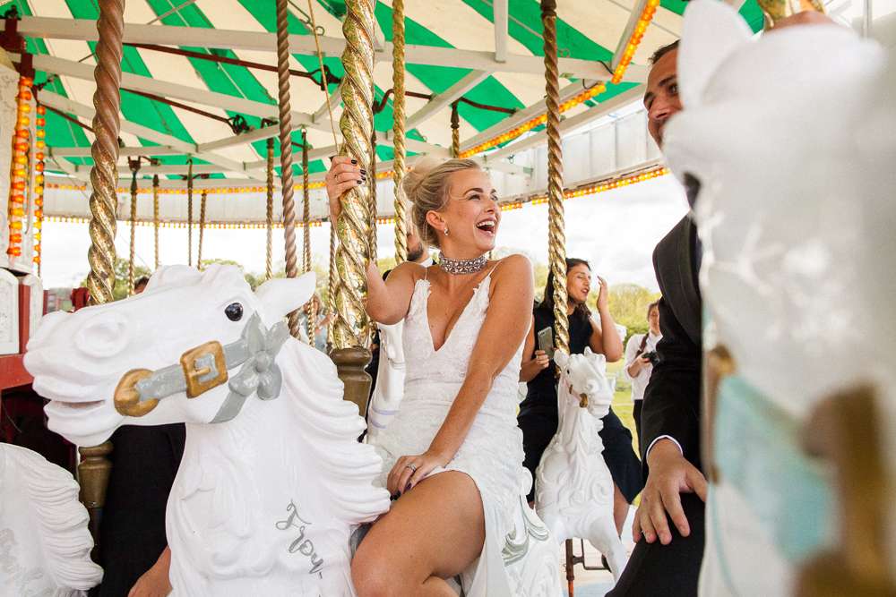 Both working in music, their entertainment had to be good – and it was. “This is the area where we could pull in some favours!” she said. After Old Dirty Brasstards had played big hits including Club Tropicana (which they arranged and learnt specifically for the wedding), guests were treated to a DJ set from Sasha B2B Mike Pickering B2b feat. Jessie Ware (who the bride manages!) According to Becky, “This was probably the part we will remember the longest – a particularly good dancefloor moment to Where Love Lives and Jessie jumping on the mic for Kings of Tomorrow’s Finally.” On top of that, there was a working carousel at the venue for guests to use after the reception and well into the night, and a Giggle Booth video booth where guests could record messages – specifically videos, not photos. “We had such a laugh looking back though the footage of everyone progressively deteriorating but ultimately it backfired on us as Phil and I feature at the end quite possibly the most drunk I’ve ever seen anyone…”