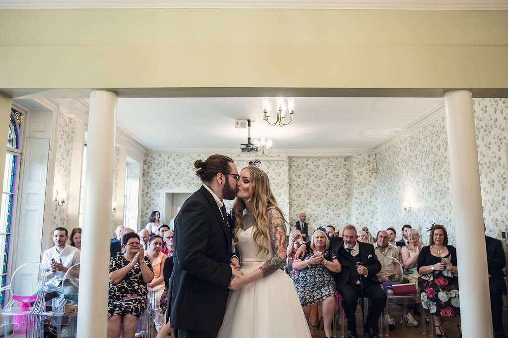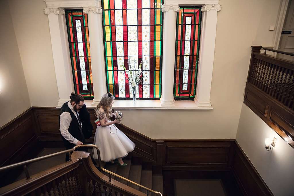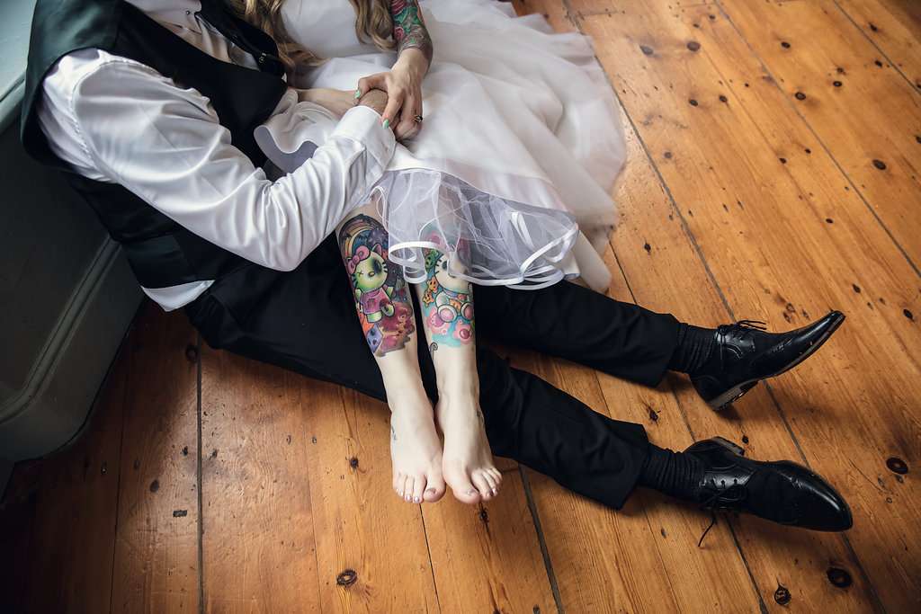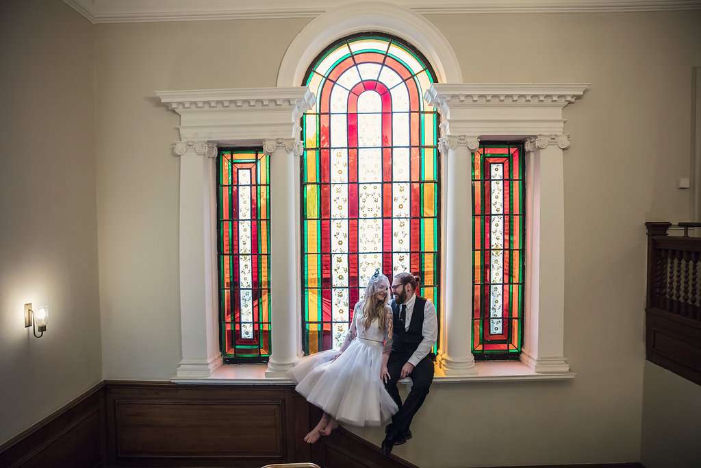 With the theme residing as non-traditional, Danielle’s and her bridesmaid’s bouquet were handmade from brooches and feathers. She also did her effortless, relaxed hair and make up herself. Their portraits are super stunning – don’t Danielle and Lee look like an incredibly cool band on the front of a music magazine? Queen of alternative wedding photography, Assassynation, killed it with the lighting, angles and framing to deliver portraits that really convey the couple themselves, rather than something rigid and awful.