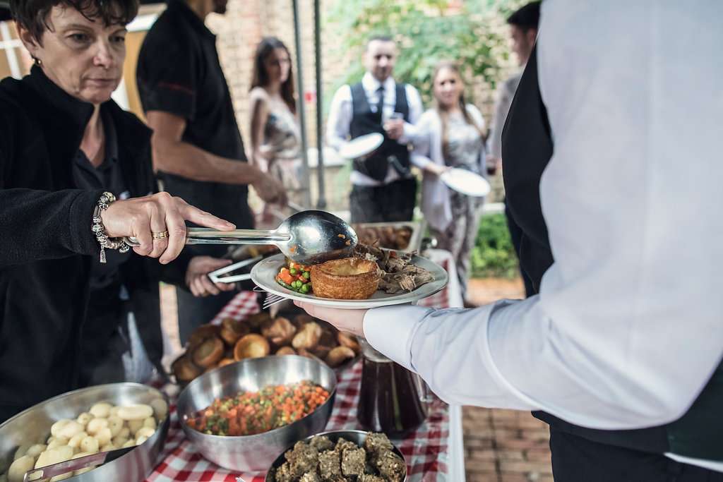 And speaking of music – let’s chat the reception. Danielle and Lee’s chocolate drip cake was made by Choccywoccydoodah and adorned with a metallic pair of lips and a big chocolate moustache. They also had a hog roast and roast dinner from the Aussie BBQ Company. To keep the reception dynamic, a close-up magician beguiled guests during cocktail hour, and there was a table football, a giant Connect Four set and a photo booth for the rest of the evening.