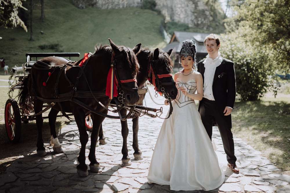 I can all but guarantee you won’t have seen a wedding quite like this one before! Sijin and Paul had a big budget, seriously creative wedding complete with the bride arriving on horseback! They were legally married on August 17th at Lambeth Town Hall in London (not pictured). Following this they had their main celebration at Bran Castle in Brasov, Romania!