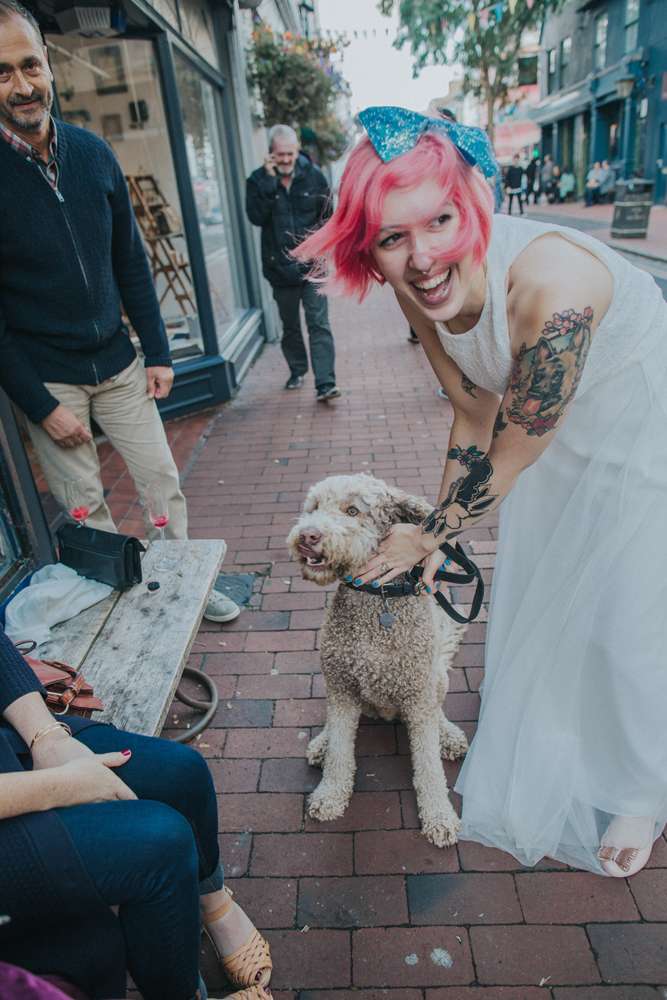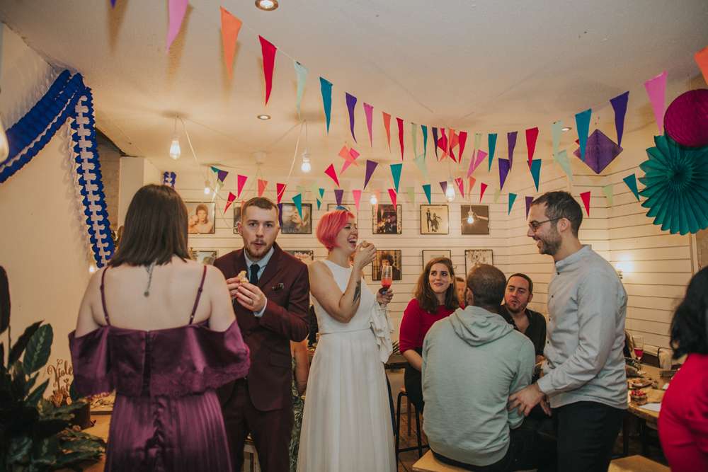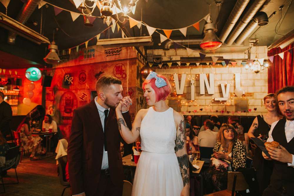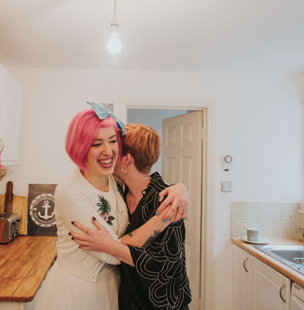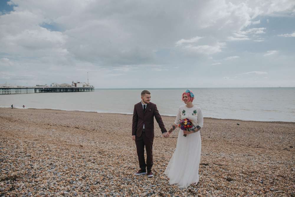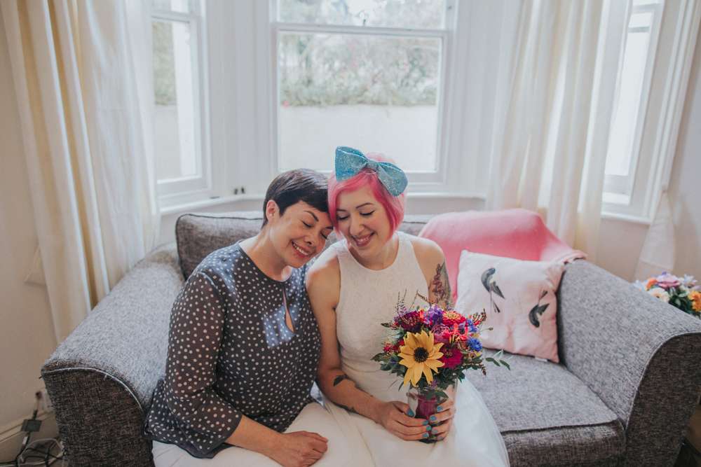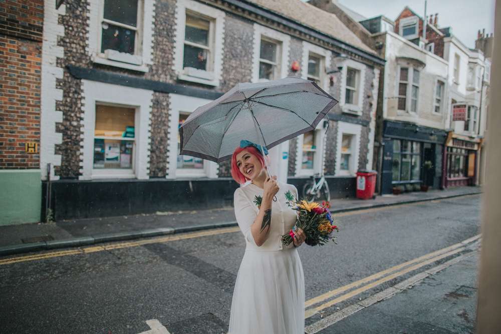 Violet and Jacob didn’t choose the plant life, the plant life chose them. And that’s why their super chilled Brighton wedding day was a totally vegan affair with tons of gorgeous donuts, pizzas and other goodies. They married in a low key, intimate ceremony with just 35 guests at Brighton Town Hall, with part one of their reception following in the coffee shop where they first met. By approaching their styling in a laidback way and their family and friends all pulling together to provide various services, they managed to create this gorgeous day for under £5,000.