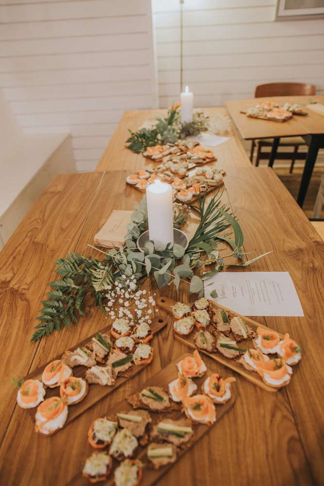 Violet said, “Our aim for the wedding was to have a really nice day and throw a big (ish) party in celebration of our love, surrounded by our favourite people and eating great food. To us it didn’t make sense to eat food we’d never eaten before, or throw a party somewhere we weren’t familiar with, so we chose to give our guests food we knew we loved and took them to places that meant something to us. Part of our reception was held at Bond St. Coffee, where we met, which is owned by a friend of ours. We’ve met so many wonderful people here, some of whom were at the wedding. Most of our suppliers were friends of ours and people we know, so I guess friendship and community was a big part of it. We also didn’t have any bridesmaids or groomsmen in the traditional way, and there was no seating arrangement, so it was all very relaxed.”