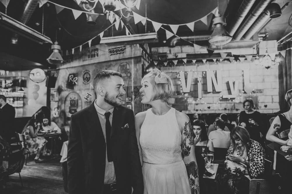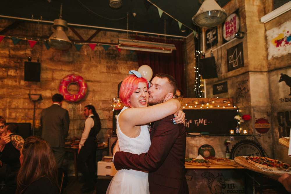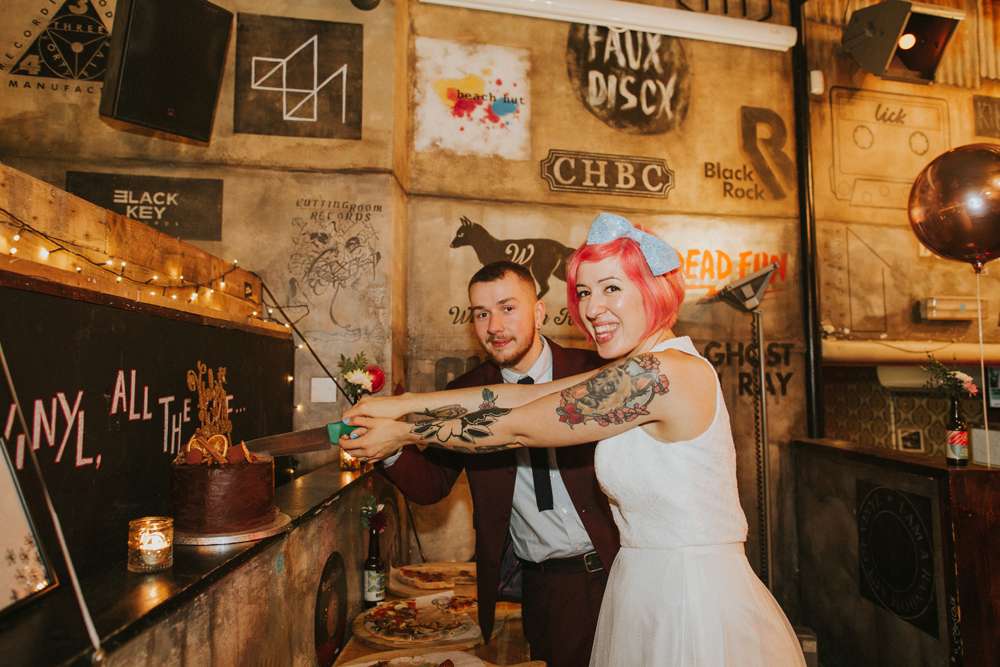 Money was saved in all sorts of ways, the main one being the love and help from friends. “We didn’t have to pay for Bond St. Coffee as it was gifted to us by our friends, and Dead Wax Social was free to hire too, we just had to pre-order food and some drinks. We also saved money by not having bridesmaids or groomsmen, and by just serving loads of pizza for everyone! Also our friend Chris DJed as a wedding gift, and our talented friend Tash designed our wedding invitations, and we printed them at the local printers.”