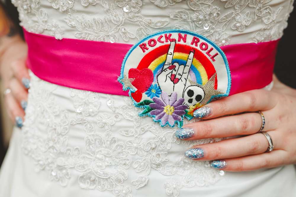 Finally we added a pink lace-up to the corset back and she made a custom ’10 year marriversary’ patch for the bottom and a ‘Rock n Roll’ patch to add to a pink belt.