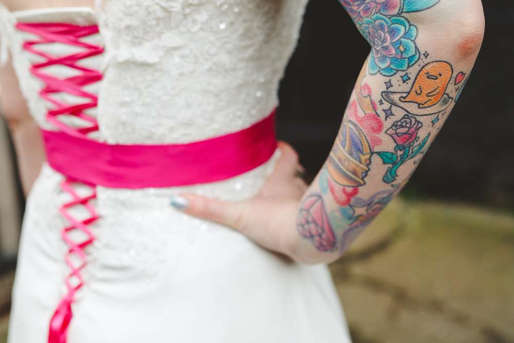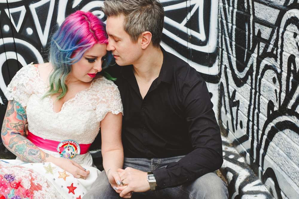So, my dress wasn’t the most ‘out there’ wedding gown you will have ever seen and the fact I rocked some Converse was pretty fucking revolutionary (the pink veil photo was a shoot, I wish I’d been brave enough to add some colour to my actual wedding day look!) But when I was looking for a dress in 2007 the wedding industry was such a different place. In fact I don’t think I saw ANY dresses that weren’t strapless. I mean, I’m sure they existed, but without a resource like Rock n Roll Bride to guide me I had no idea where I’d even look for something more alternative.