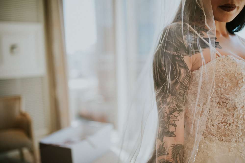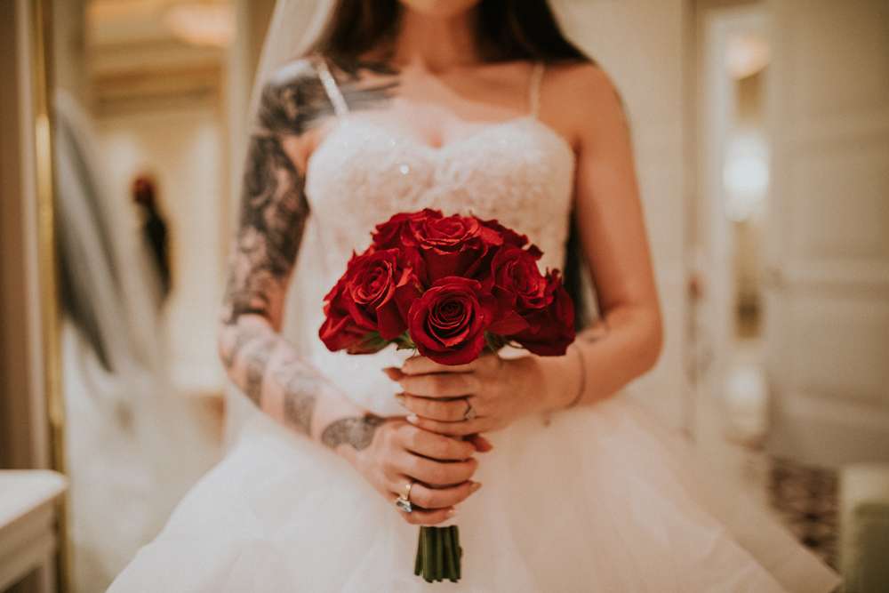 “We are also very grateful to our photographer, Felix, for making us feel so comfortable. I was very emotional on the day about how pretty I felt despite being a tattooed bride. I am met with people who openly tell me how much they dislike my tattoos on a daily basis at work as well as having members of my family who really don’t like them to the extent that when I see them I have to cover them up… Sometimes I almost feel ashamed of how I look. Therefore feeling pretty on my wedding day and feeling as though I didn’t have to cover up my skin meant a lot to me, as did marrying a man who never makes me feel ashamed of myself and how I look. He has made me feel like the luckiest woman in the world.”