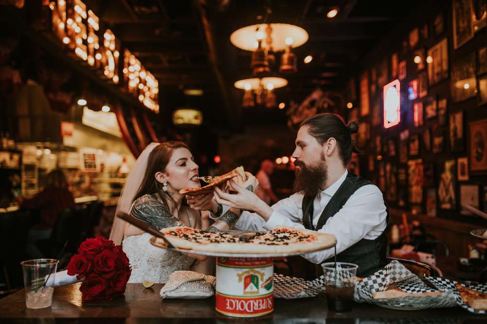 “The best thing about our wedding was that we didn’t have to think of anyone but ourselves and we didn’t have to plan our wedding to please anyone else. We could just do it our way which was amazing. We even got to go to a gig which we would never have been able to do if family were there!”