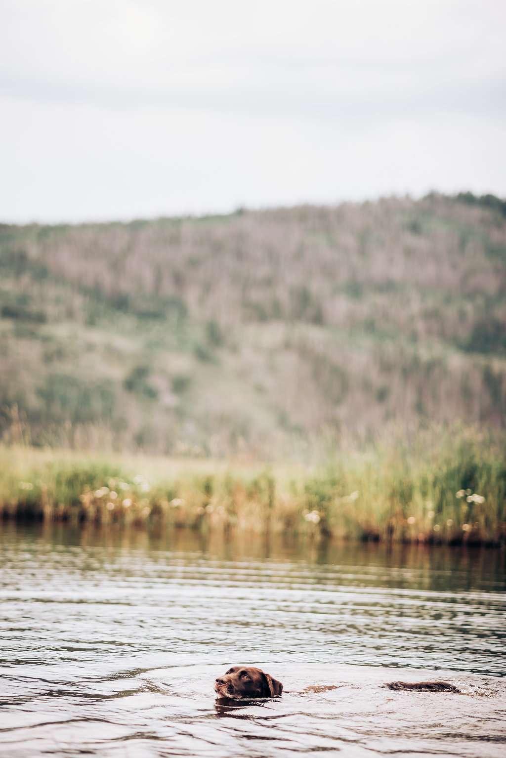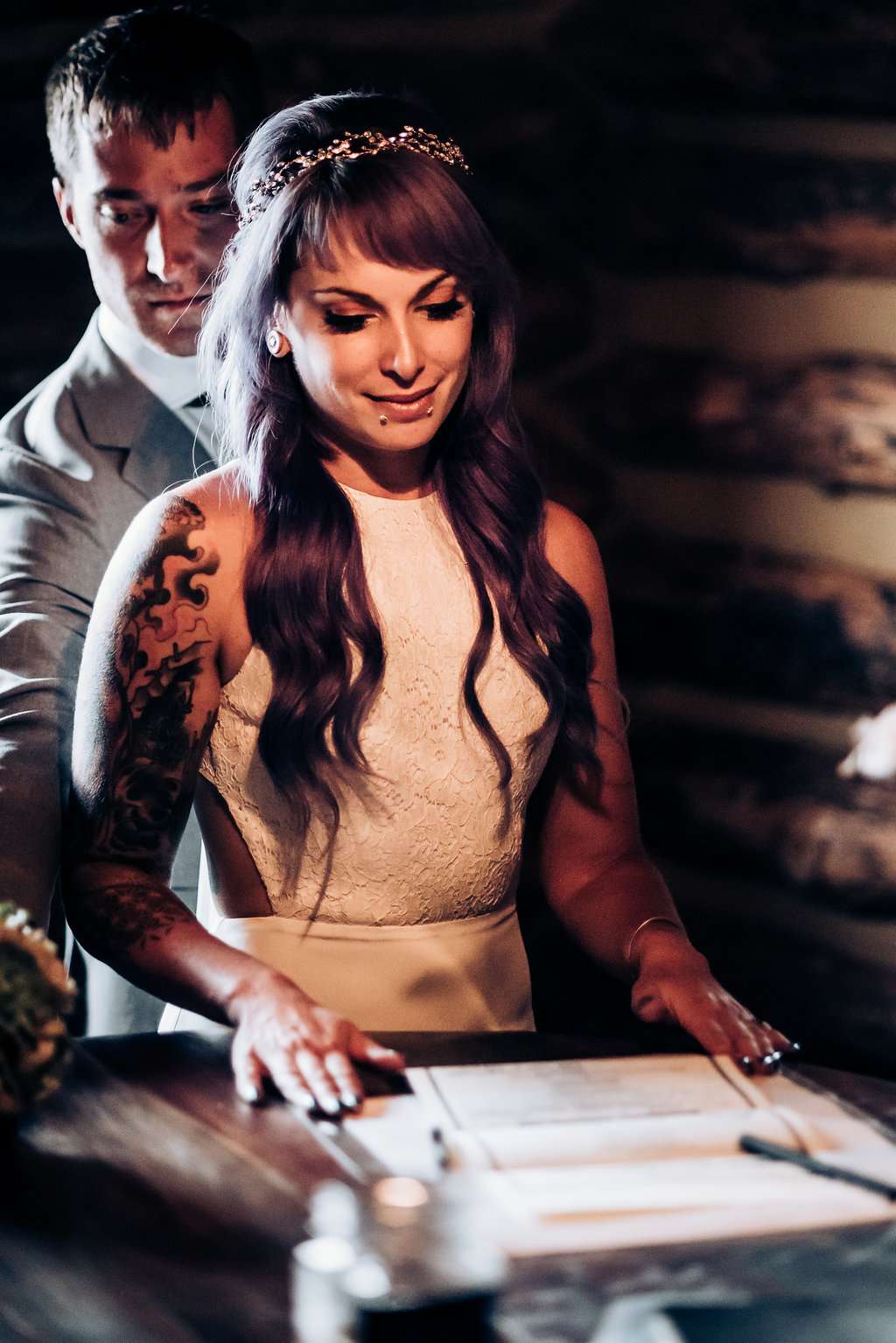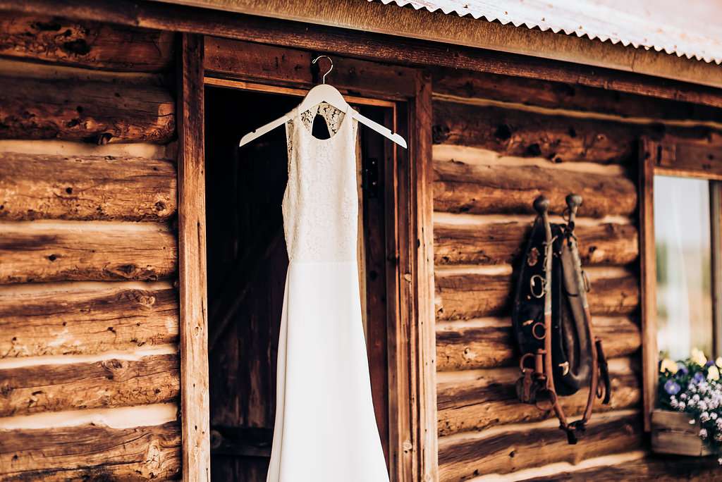 After their ceremony, Emyli and Matt took themselves off to a beautiful aspen grove in which they said their vows in private to each other. “It was so romantic, and we didn’t have to be nervous in front of all our guests. All of my favourite parts of the day were the time we spent alone together – our vows, our first dance, and our sunset photo shoot followed by Matt carrying me back to the bridal cabin so we could change into our matching Nikes for the rest of the party!” Their dogs also played a major part of their day and the photos.