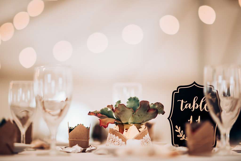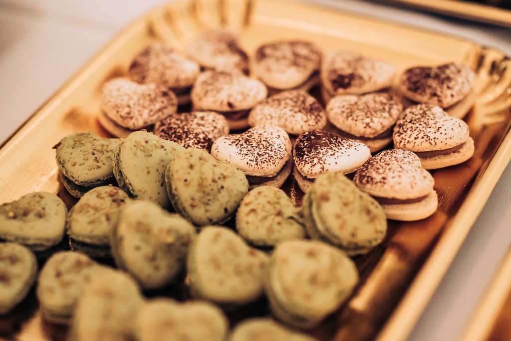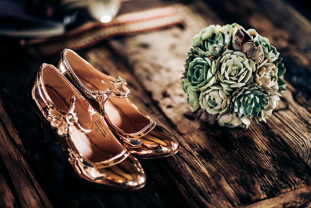 Emyli and Matt DIYed the hell out of their wedding decor. “Our place cards, centrepieces, mugs and shoes were all homemade, but the hardest to make was the wedding favours. We did origami with brown paper around the succulents and tied each one with a string – it was an all-night project resulting in sore fingers!” Emily’s bouquet was also made totally from lush succulents and one rested on top of the buttercream Piece, Love and Chocolate cake they cut, and alongside that they had super cute love heart shaped macarons!