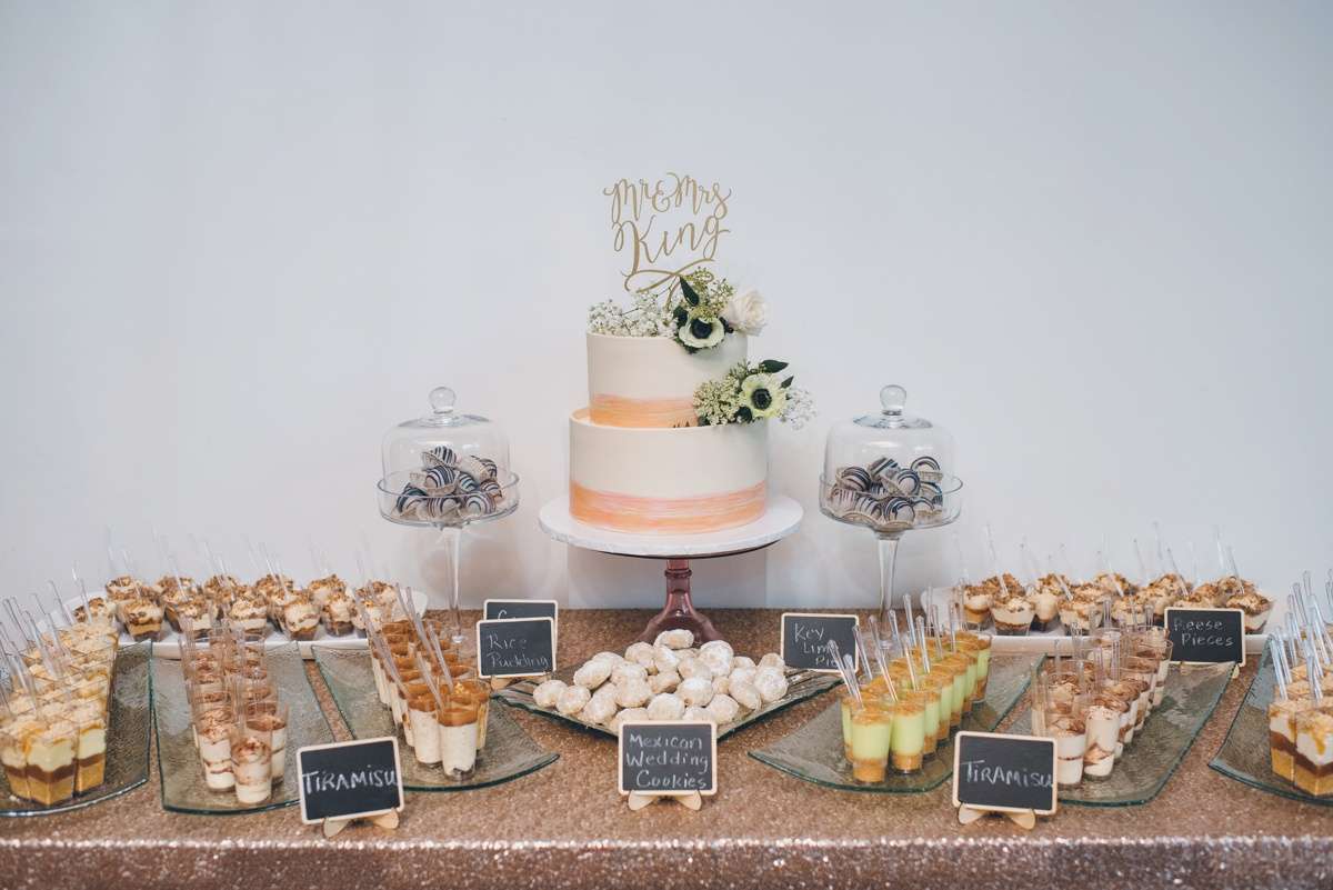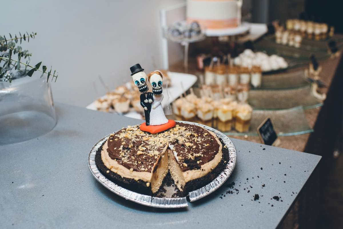 “Food was also huge for us. We wanted as many tacos and as much cheese as we could at our reception. We did open plan seating and had food out for hours so people could eat when they wanted and not feel like there was an itinerary to follow. We didn’t do garter tosses or dances, with the exception of our first dance. We wanted the night to be super relaxed.” And because food and booze was so important to Brandi and David, it was therefore their biggest expense. “We love to eat and cocktail. We basically blew our food budget and threw it out the window!” Getting the catering sorted was problematic at first. “We had multiple restaurants fall through on food for us, which was killing us because we didn’t realise that asking for tacos for 130 people was that much! But our venue owner owns a restaurant called Knife & Tine as well, and her assistant did a custom menu for us, which totally took the stress away.” Their cake was by Central Continental Bakery, with more sweets on the dessert table by the bride’s mum Theresa and stepmum Christine, finished off with a pie by First Slice Pie.