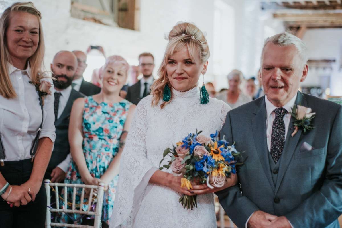 The ceremony was pretty emotional for the couple, and Lizzie said, “We were just smiling and crying; it was a snotty mess. My uncle did one reading and our friend, Em, did a reading of Kate Tempest’s Man Down, which I would say describes love as honestly and beautifully as I’ve ever heard. She swapped the word ‘fuck’ ‘for ‘love’, though, as there were lots of tiny guests. One of my dad’s friends is a fiddle player, and he played Josefin’s Waltz as I walked in, and The Roaring Barmaid as we exited. I think a lot of people feel a bit uneasy with some of the concepts of marriage today, and I certainly did, so we wanted to keep things as equal as possible, gender-wise – I kept my surname, and vows-wise, we just edited the suggested vows to omit anything that hinted at stuff we weren’t comfortable with like obeying – there isn’t gonna be any obeying on either side!”