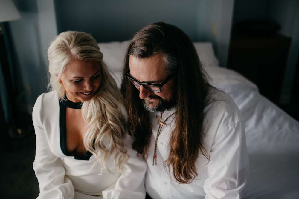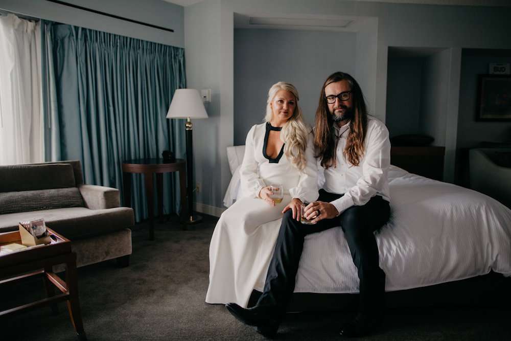 Ivy and Nate look like total bad asses in their wedding outfits, with Ivy wearing a Giambattista Valli dress she bought from Net-A-Porter. “I was out of town a lot in the build up to the wedding and just never made the time to go and try on dresses with family and friends. In the end, I did a lot of looking on wedding blogs to find my dress – I bought four, and ended up keeping this one.”