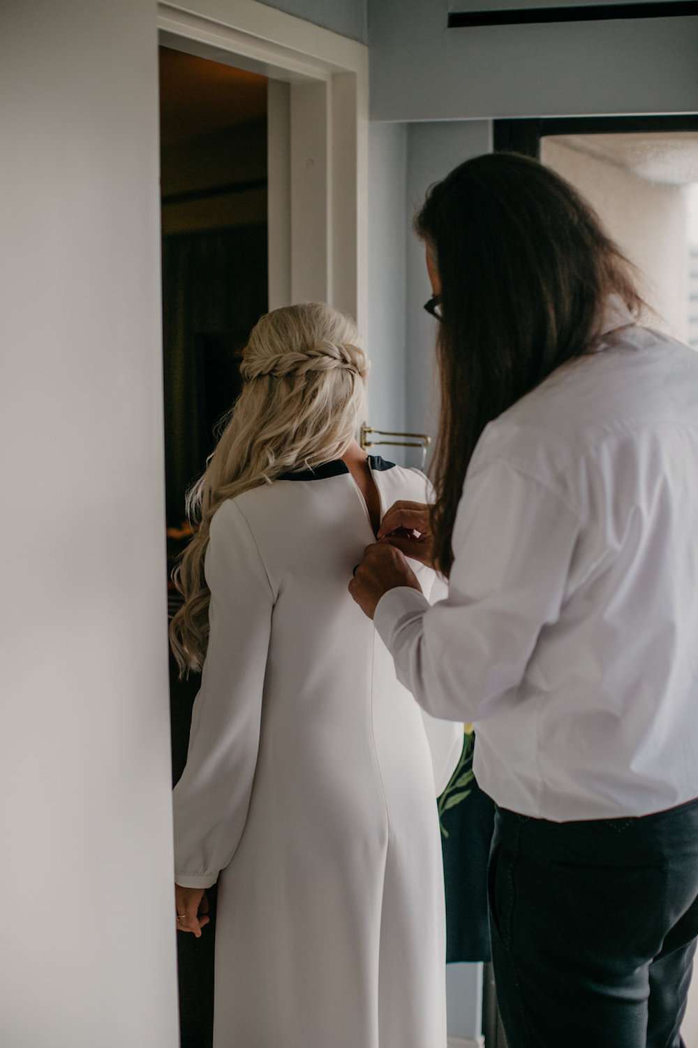 They had decided not to have a ceremony on that day, opting instead of a private one at their house on a later date. This meant that Ivy and Nate got ready together with family and friends, “It was really nice because we experienced every part of the day together,” Ivy explains. “I know everyone says this but the day goes by so fast, so spend as much time together as you can.”