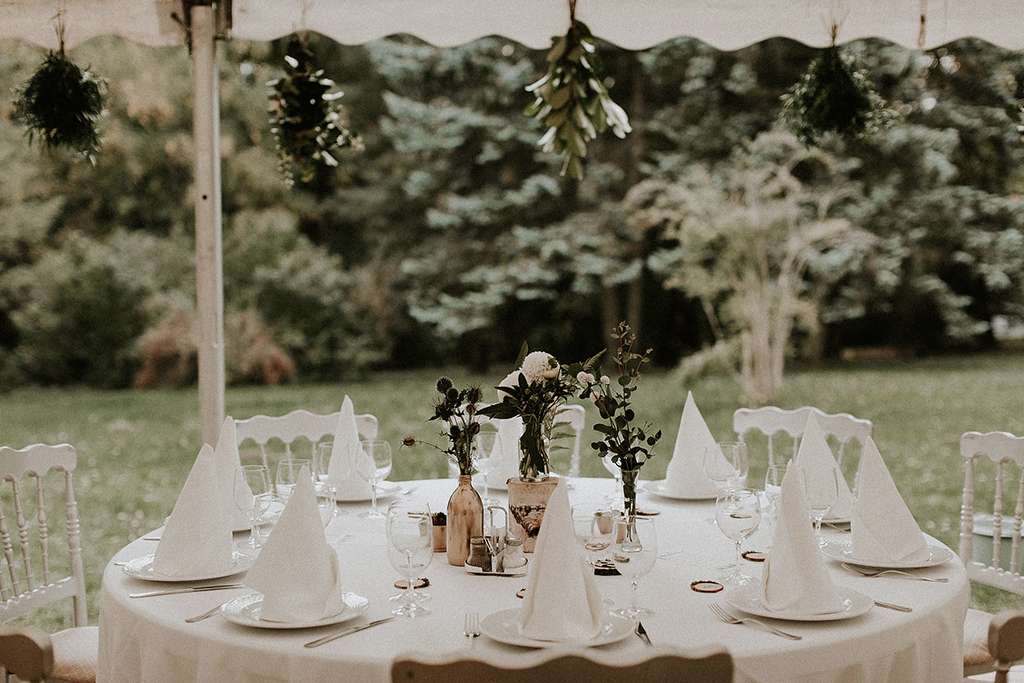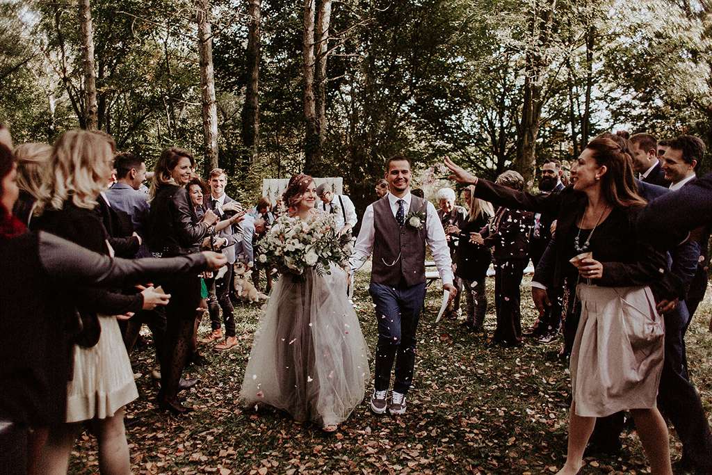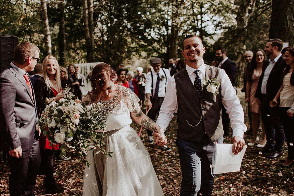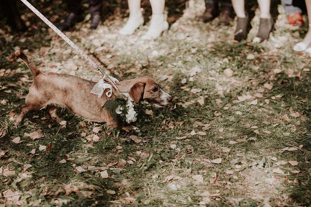 With a simple leafy backdrop, the couple had their ceremony right there in the forest – with their dogs as ring bearers/bridesmaids by their sides the whole way through! They wrote their own vows which made for an emotional service, and they had friends as witnesses which made it even more personal.
