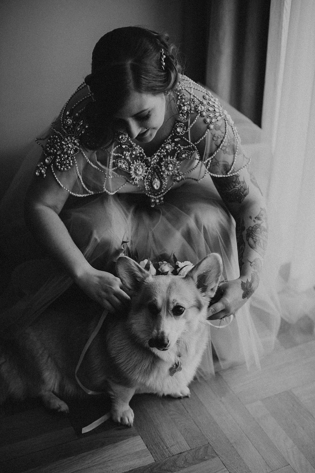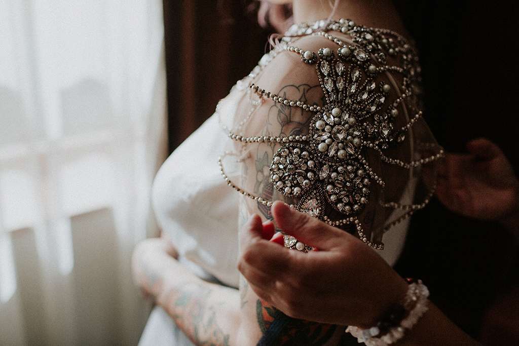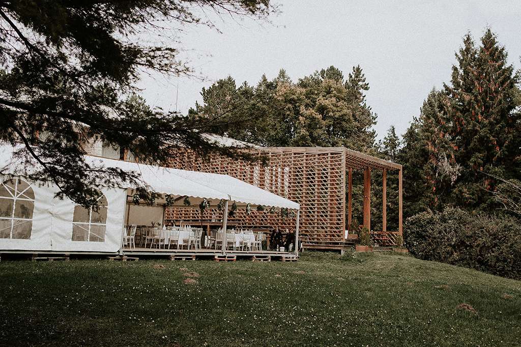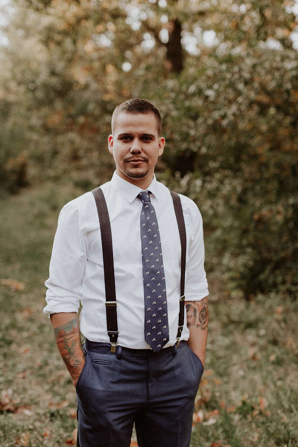 Their big day was held at a hunting lodge – specifically chosen for it’s location amongst the pine tree forest. The couple have a love of the outdoors, and pine tree forests especial. The bride explains, “We love the spooky, weird darkness that under a pine tree forest brings – the beautiful green/blue-ish light they case and and mysterious, dreamy vibes. We started out wedding planning with this one criteria in mind and the rest fell into place after!”