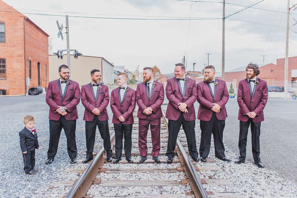 “Our theme was boho glam”, explained the bride. Our inspiration was wanting to reflect our very own personalities and styles. All of the details were us to a T! It all started with my stunning bouquet of flowers. We had the groomsmen in the most amazing burgundy coloured suits. It’s uncommon for the men to be the more extreme ones in their attire choices, but these guys went all out!”
