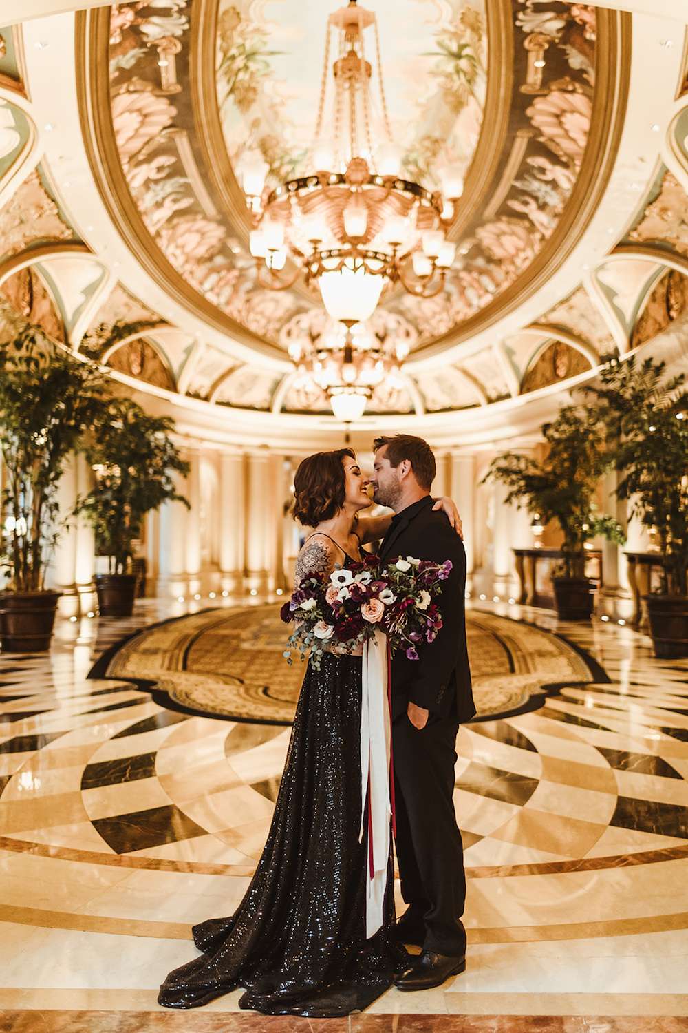 Badass Venetian Las Vegas Elopement with a Black Sequinned Dress and Frenchie Inspiration 30