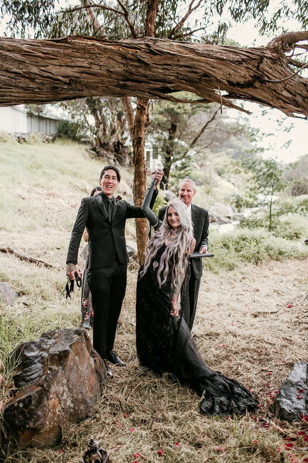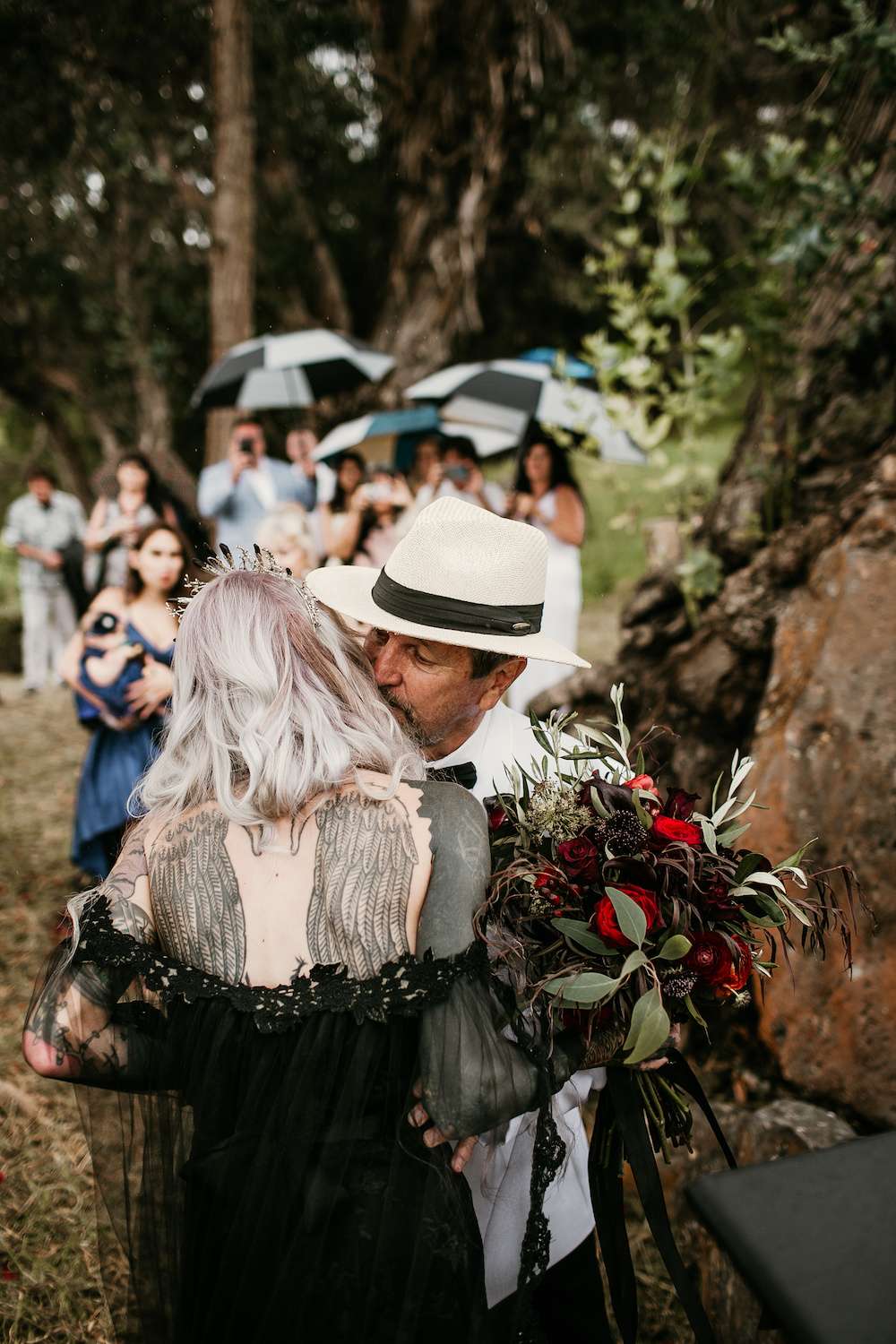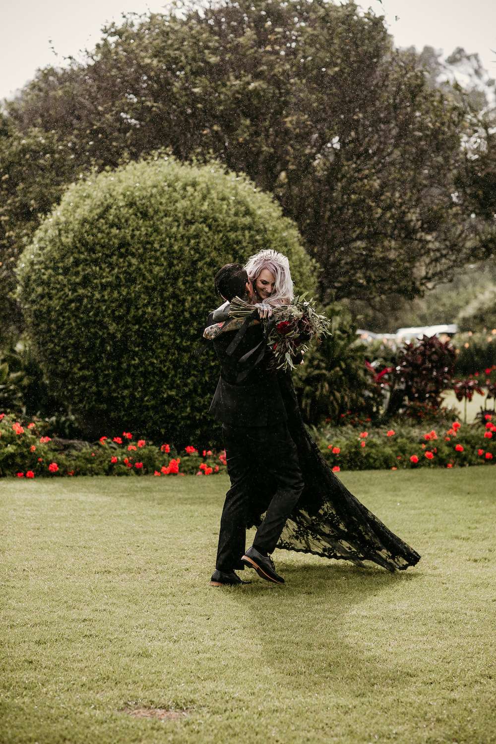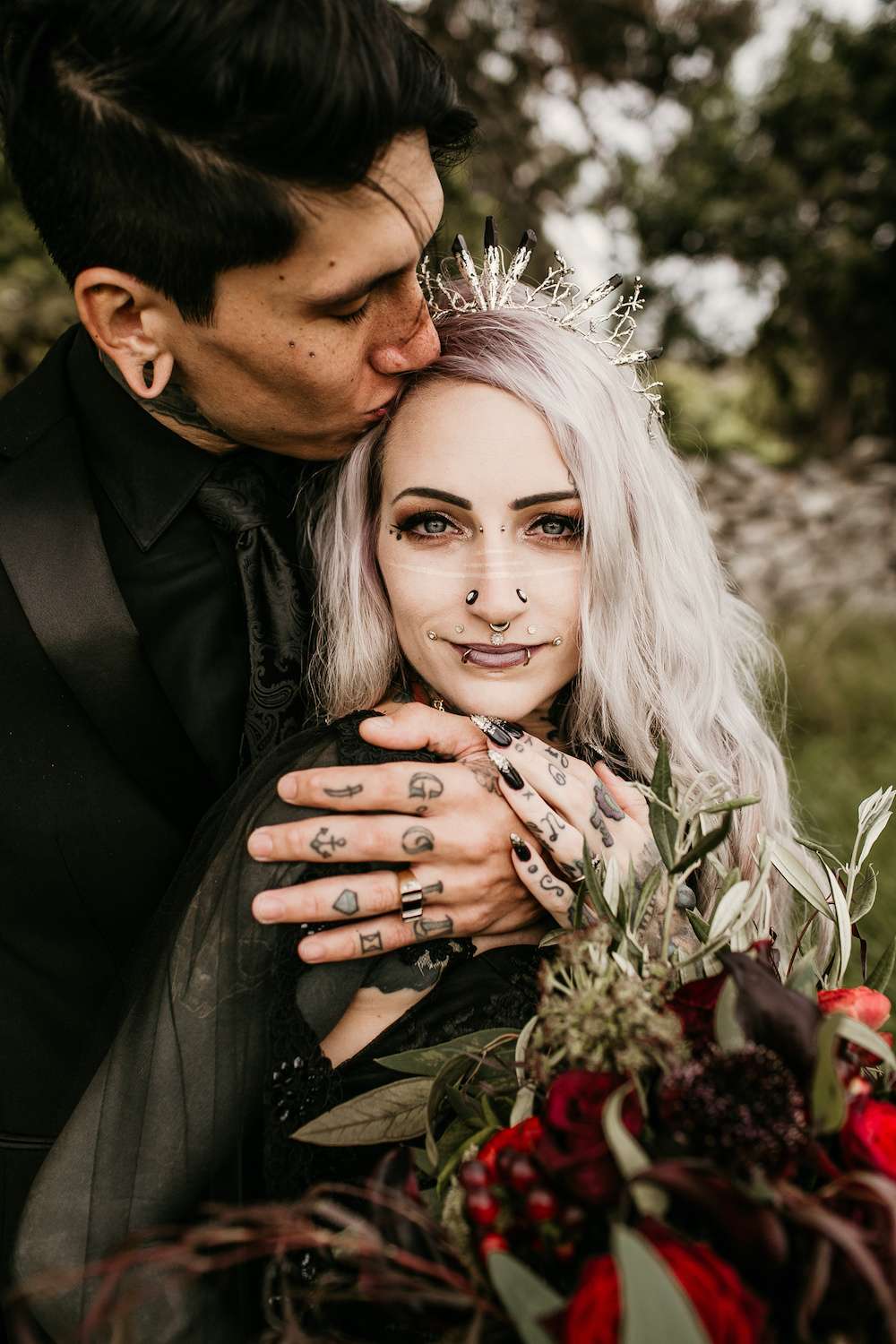 Hold onto your hats, ladies and gents, and if you’re not wearing a hat, hold on to just about anything, because this Friday 13th wedding is going to shake you to your core. The most incredible couple, deep colour palette and gothic styling have come together in this amazing wiccan-inspired wedding, where all of the Rock n Roll Bride aesthetic stars have aligned.