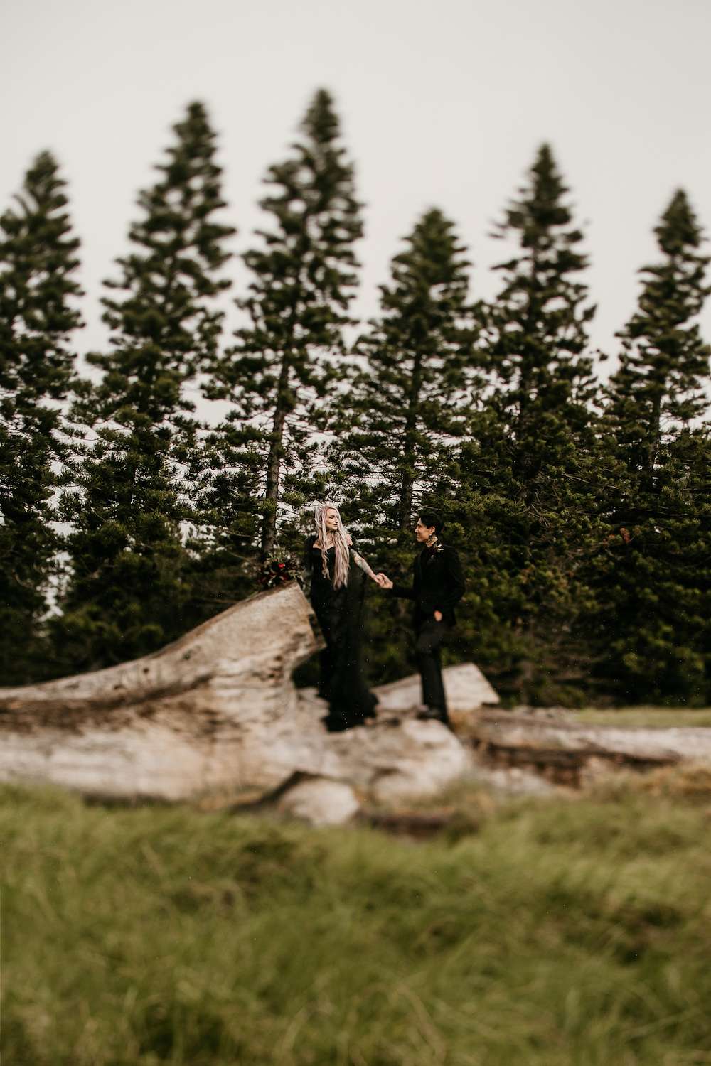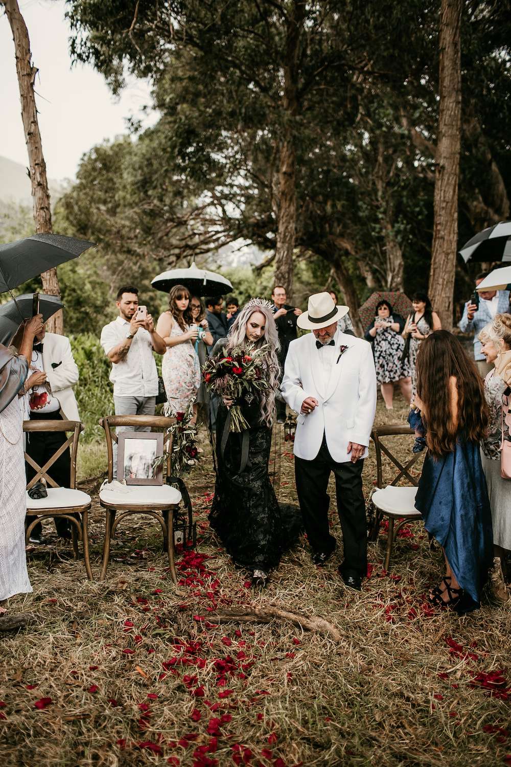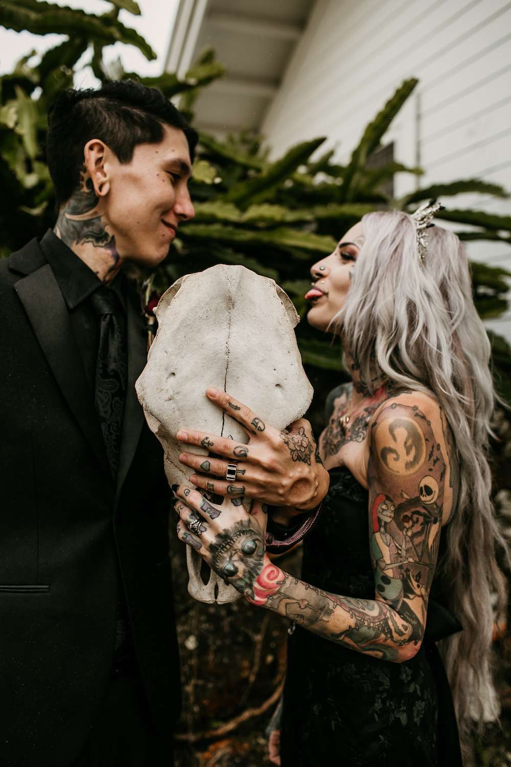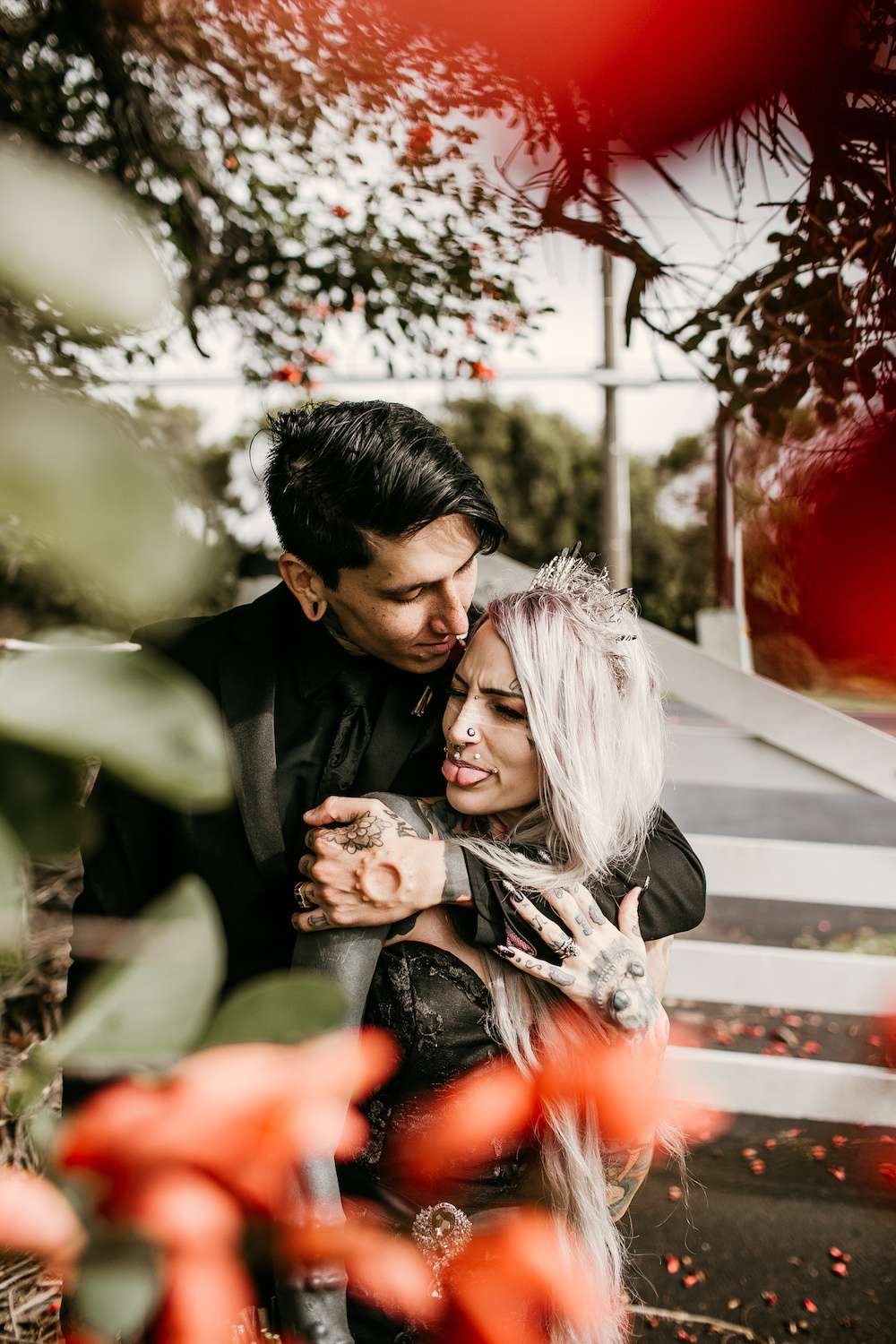 Hold onto your hats, ladies and gents, and if you’re not wearing a hat, hold on to just about anything, because this Friday 13th wedding is going to shake you to your core. The most incredible couple, deep colour palette and gothic styling have come together in this amazing wiccan-inspired wedding, where all of the Rock n Roll Bride aesthetic stars have aligned.