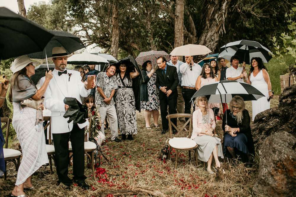 “Our ceremony location was outside, AND IT RAINED!” she laughed. ‘However, rain on your wedding day is seen as good luck in Hawaii… and it definitely made our pictures that much better! But there was one part of our ceremony where our officiant read ‘Now you shall feel no rain’, paused, looked at us, and then said ‘well, it’s raining, so this is a bit awkward…'”