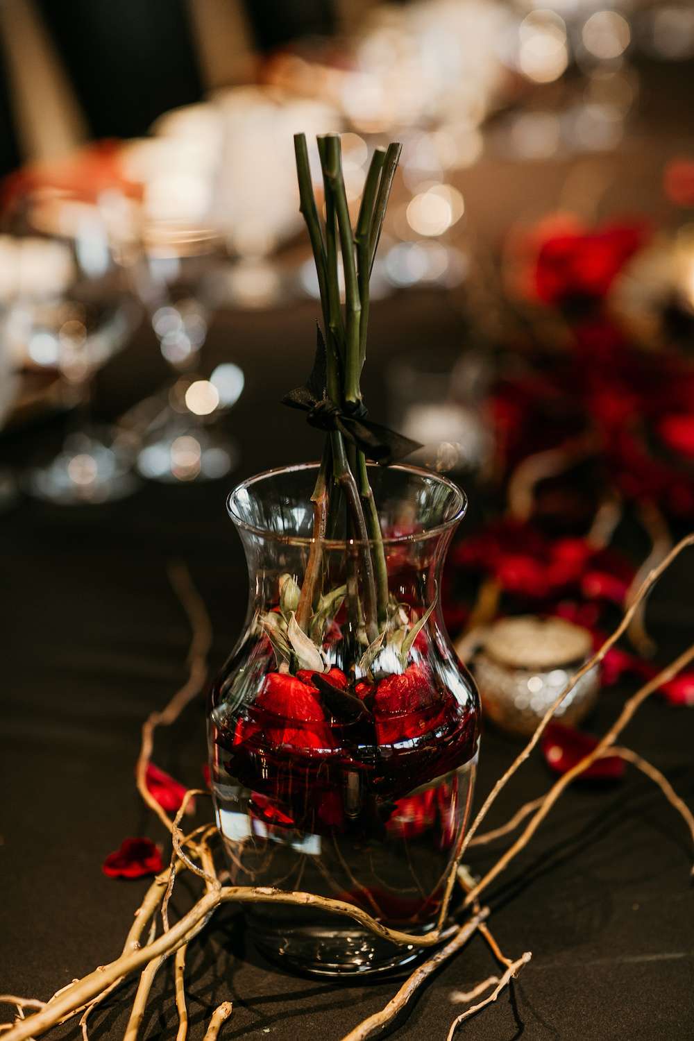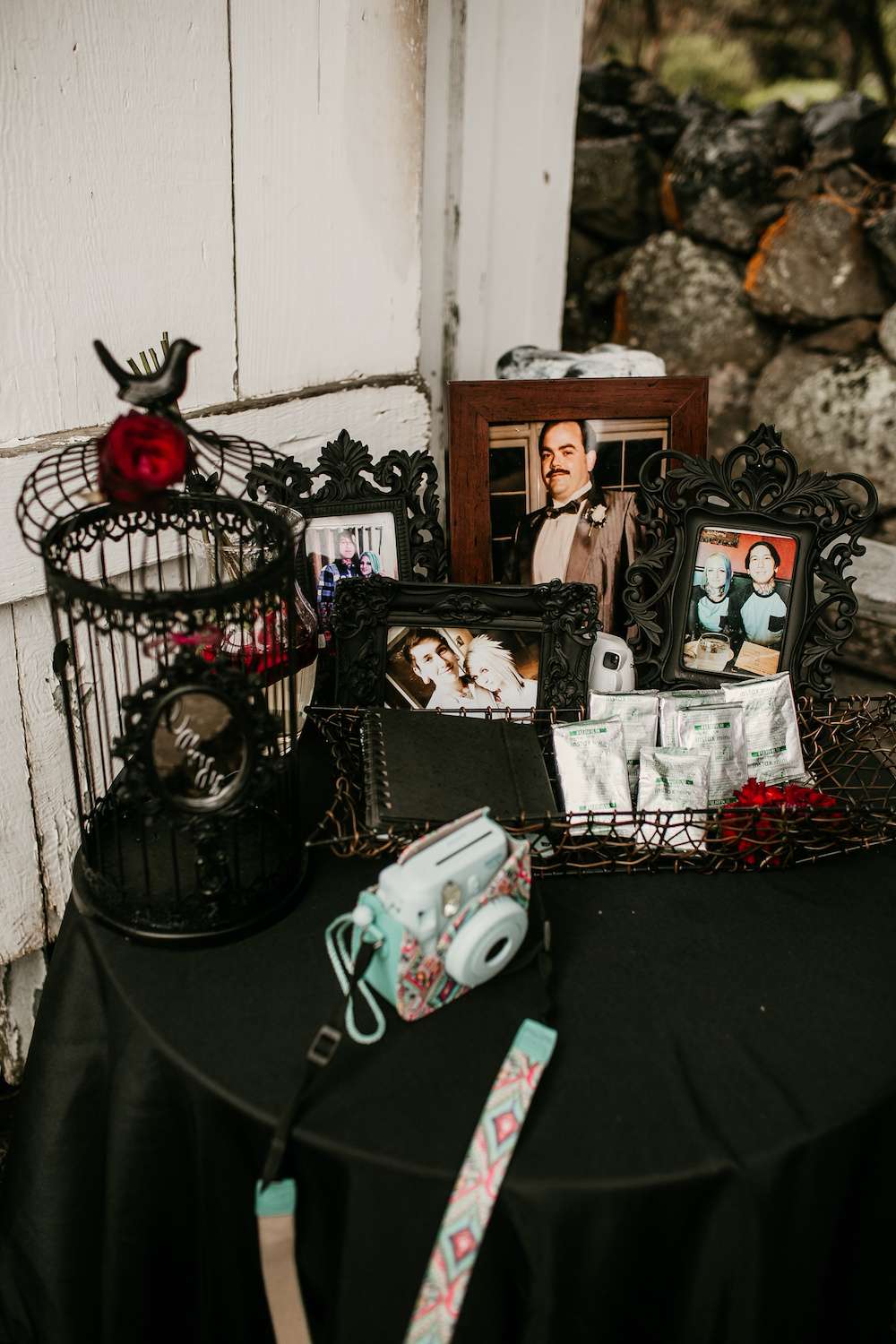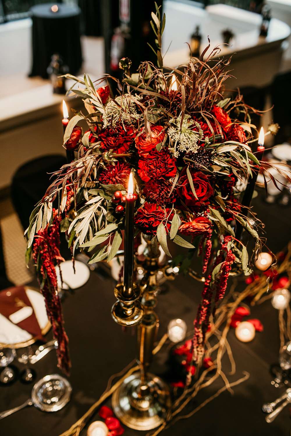 Their theme was “a gothic/occult vibe – but one that wouldn’t give our parents a heart attack!” Chelsea explains. “Dark, elegant, and romantic – kind of like what you’d imagine Morticia and Gomez Adams’ wedding to be like.”