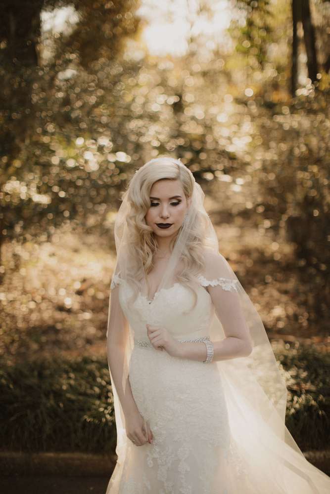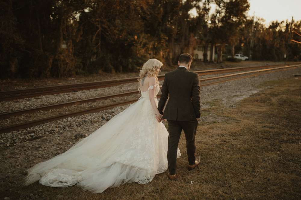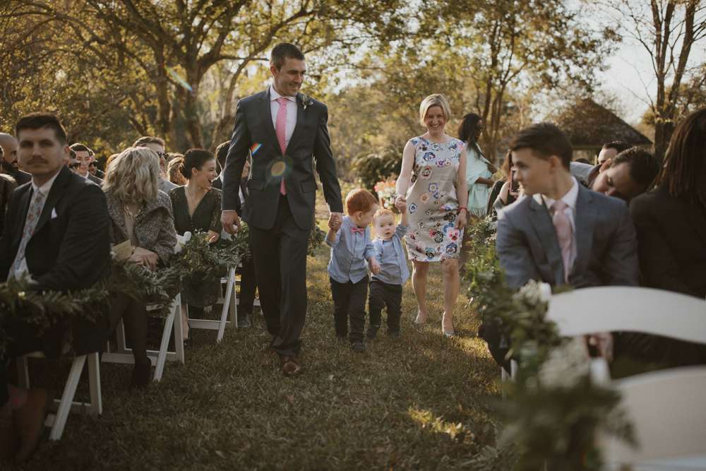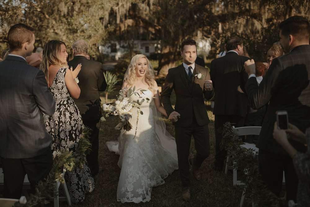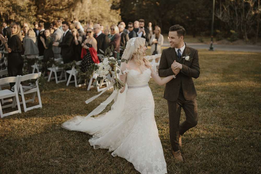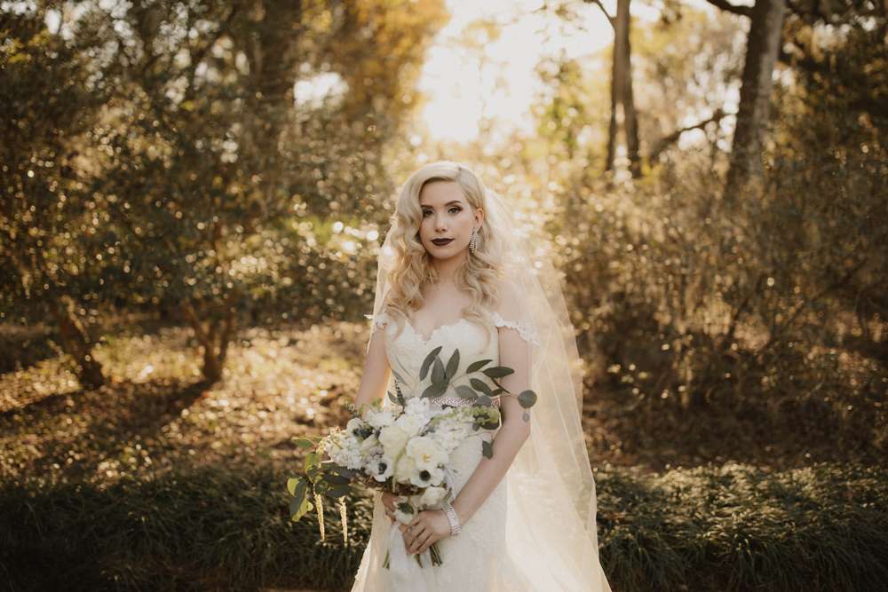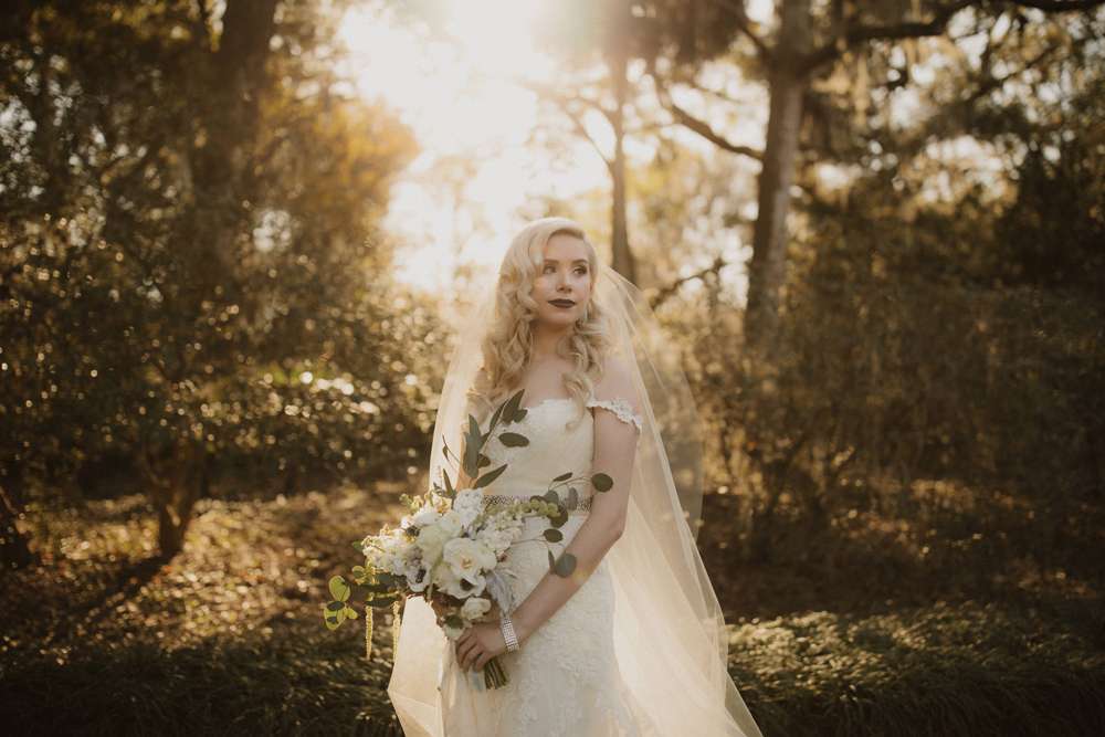 The ceremony was held outside (which, although it was technically winter, was totally possible in Florida!) at the Harry P Leu Gardens. It was a short and sweet service with some personal touches. “Lloyd walked down the aisle with both his parents and then I did the same. We skipped some ceremony traditions in place of ones we felt were more us such as a wine box ceremony. The Florida ‘winter’ weather was perfect, the gardens were perfect and we got married under a beautiful tree. The spot we chose wasn’t one of the pre-determined ‘wedding areas’ but we really wanted to be married under a tree and our original choice was destroyed by a hurricane. We got to pick our own custom spot (a week before the wedding) and were the first to use it! We had instrumental covers of the Jurassic Park theme song, Han Solo and The Princess (from Star Wars), and A Married Life (from Up) playing during the ceremony. ”