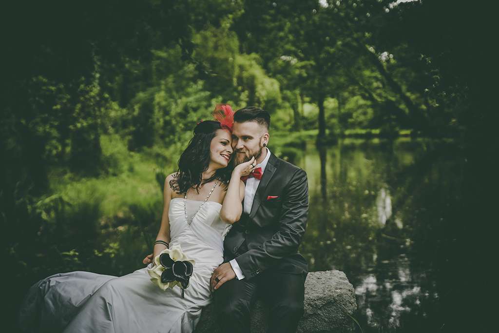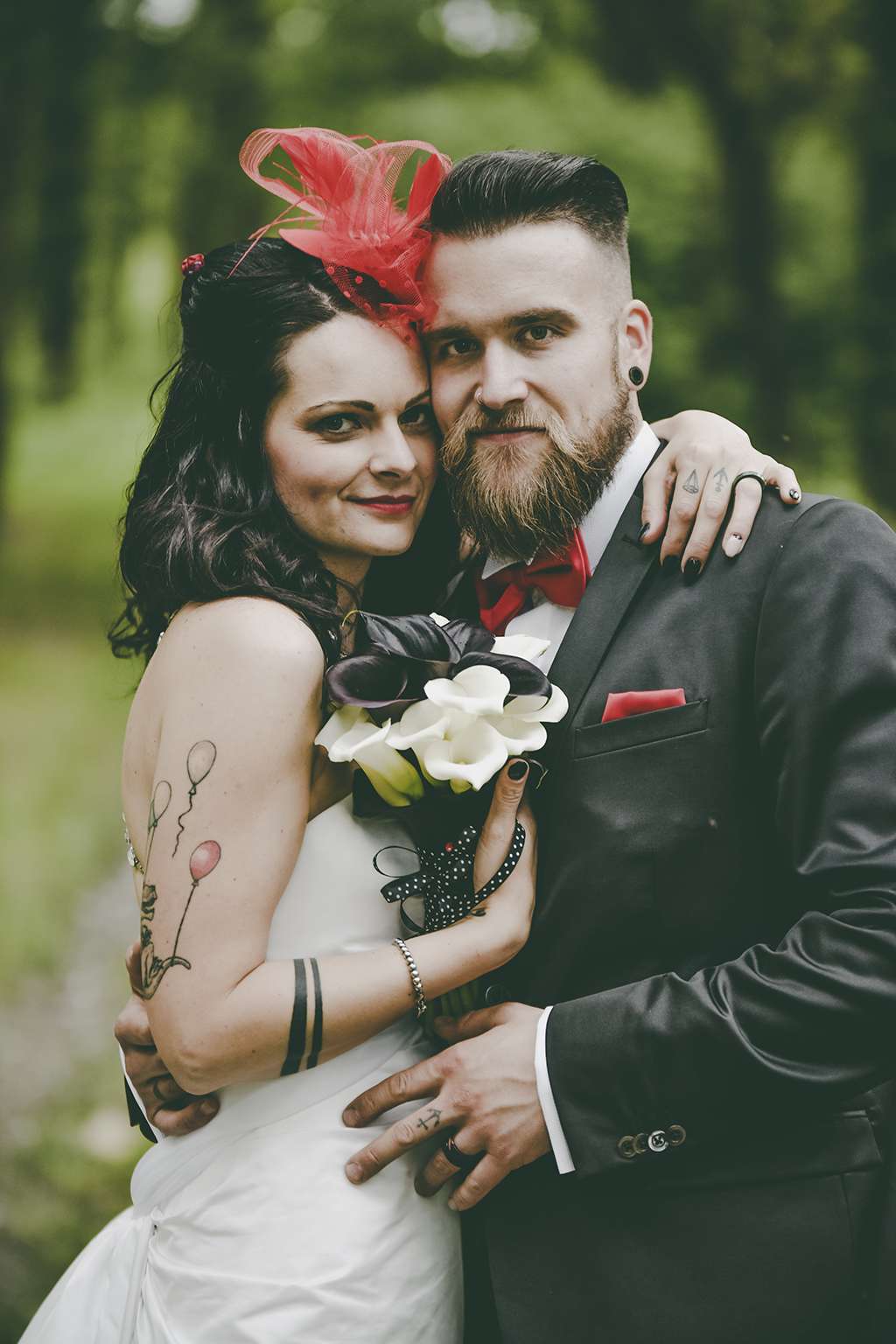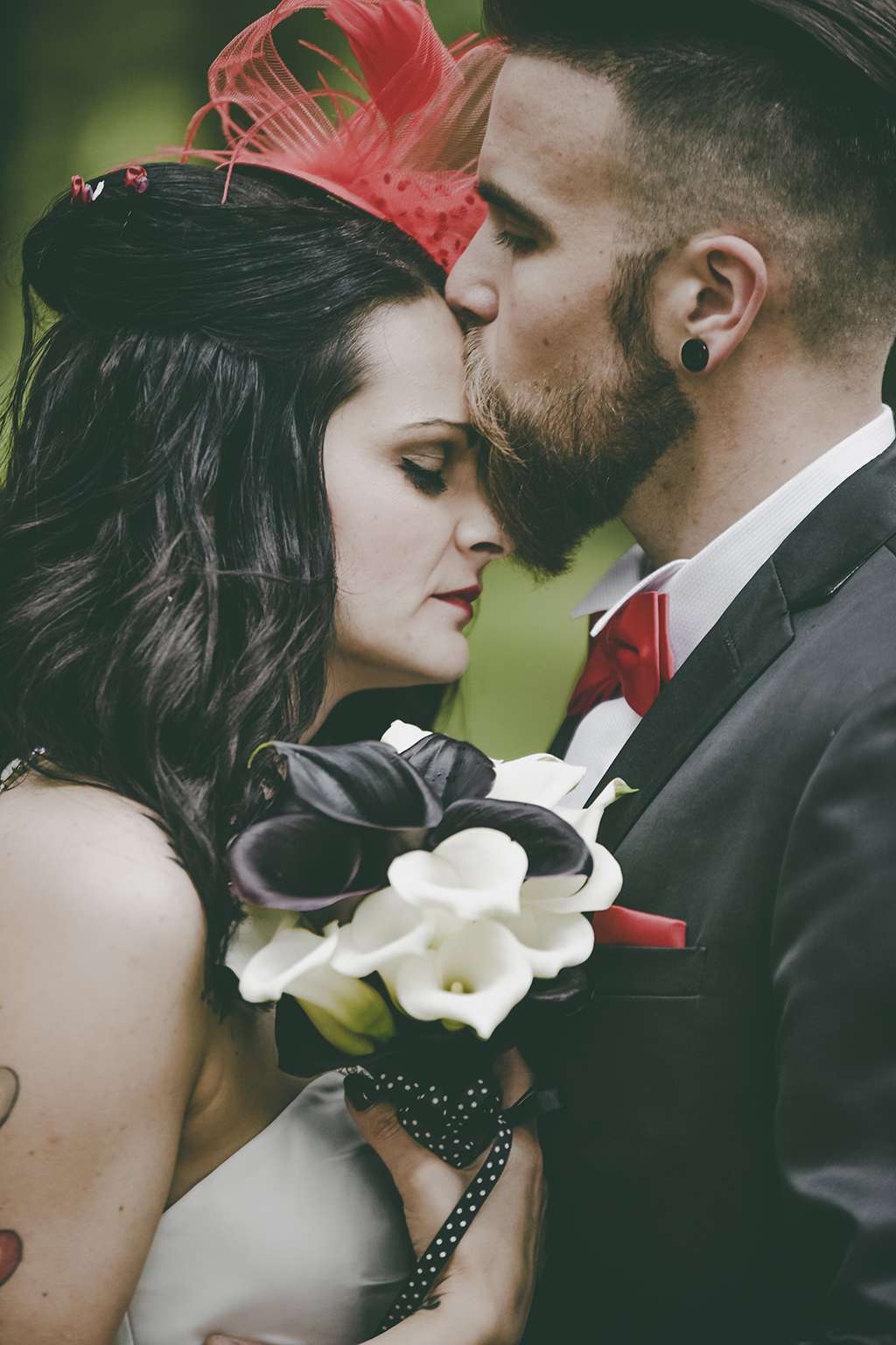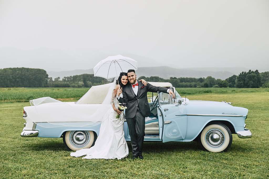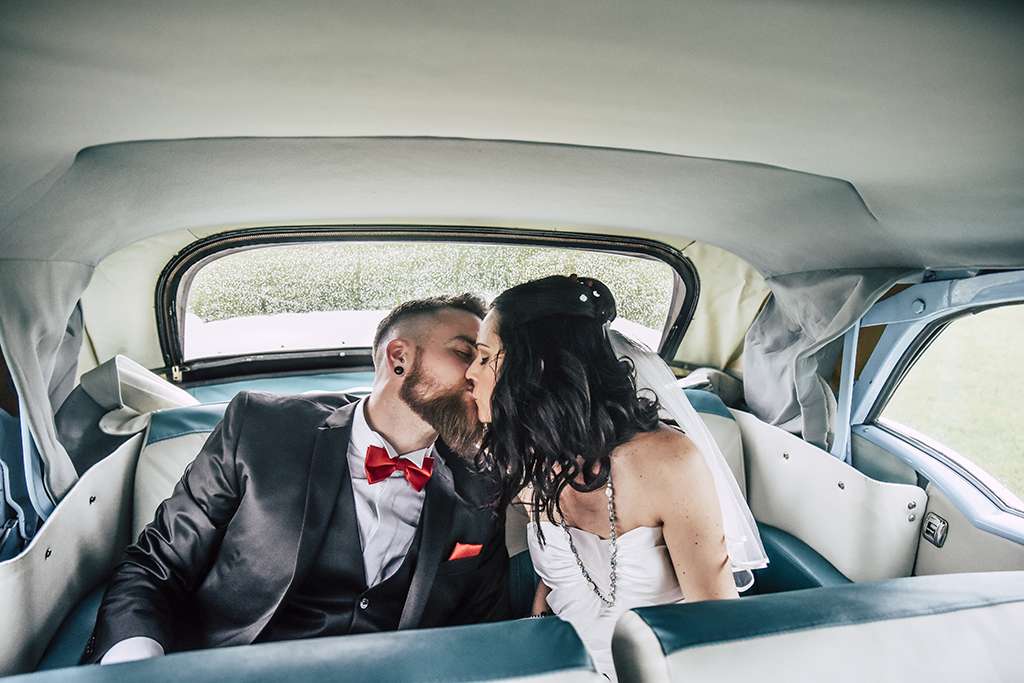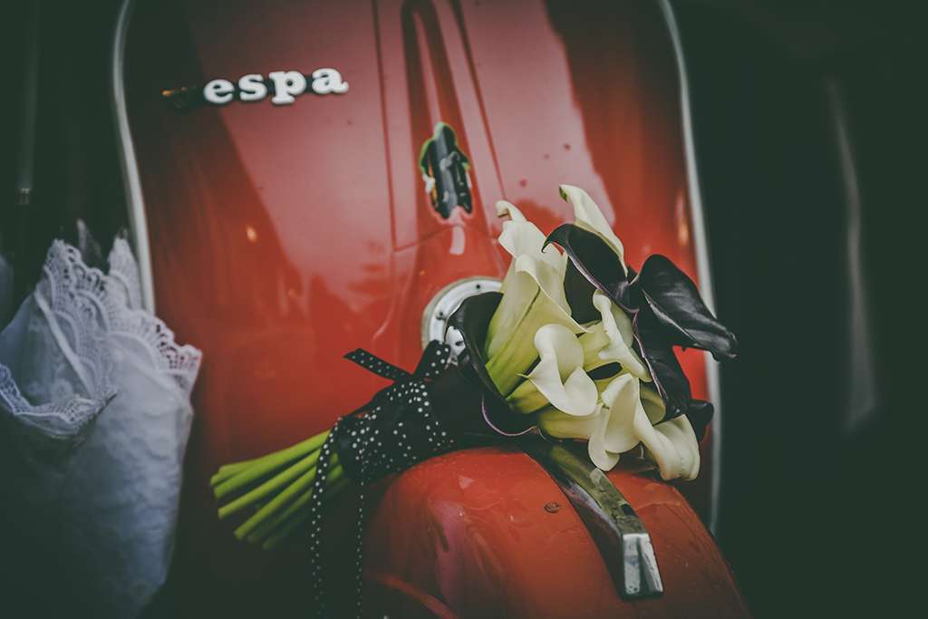 The couple of have a love for all things from the fifties as well as rockabilly, so this was the main inspiration for the wedding. They had tattoo and retro diner inspired stationery, pops of red throughout and a bright red vintage Vespa and Cadillac Bel Air as their transport. “We were inspired by the idea that having a bright and happy wedding would make for a bright and happy marriage!” said Silvia. Even their guests got into the fifties theme and each wore a touch of red in their outfits!