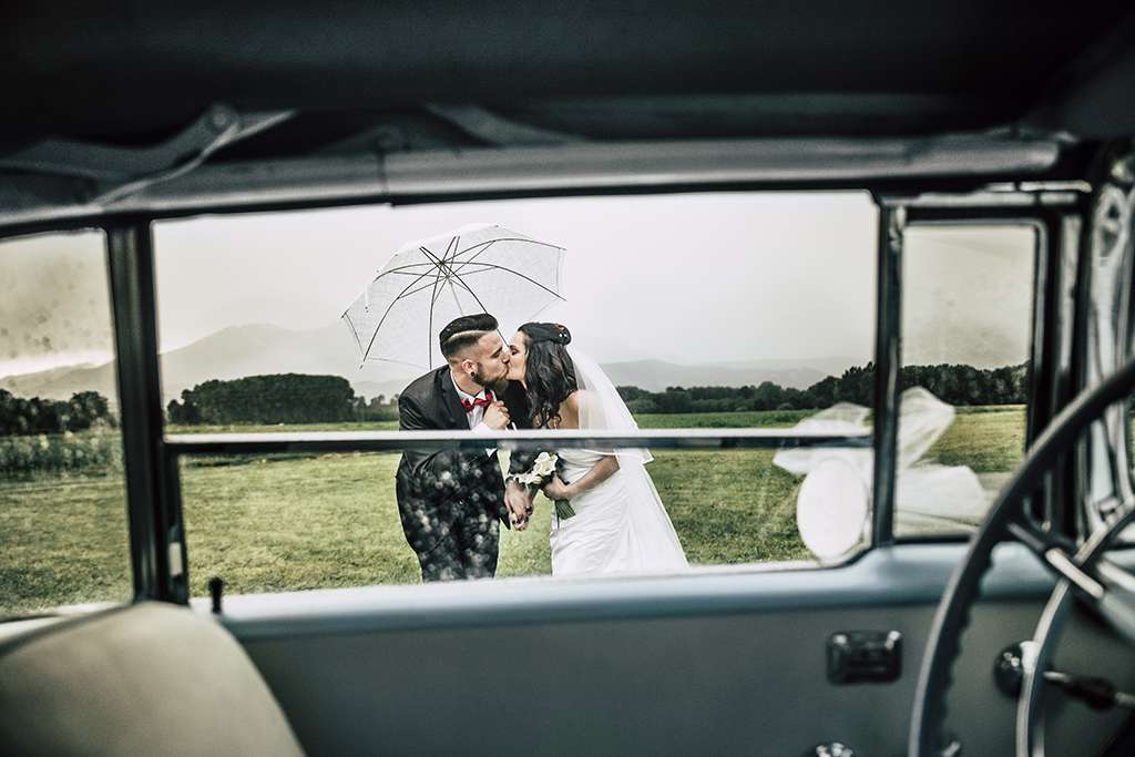 While Silvia and Elia wouldn’t have changed anything about their day, it wasn’t without incident; a relentless storm brewed and started taking decorations, and even a gazebo, in its wake! True to their carefree selves though, they made the best of a bad situation and took photos dancing in the thunder and lightning, laughing the whole time.