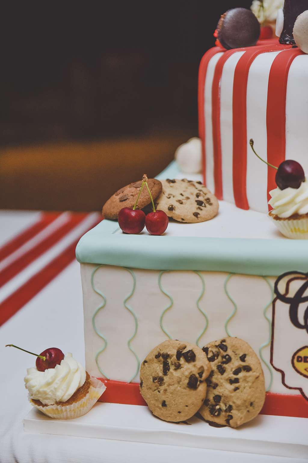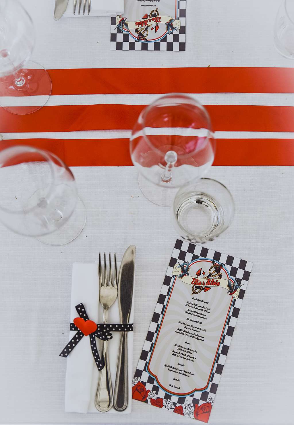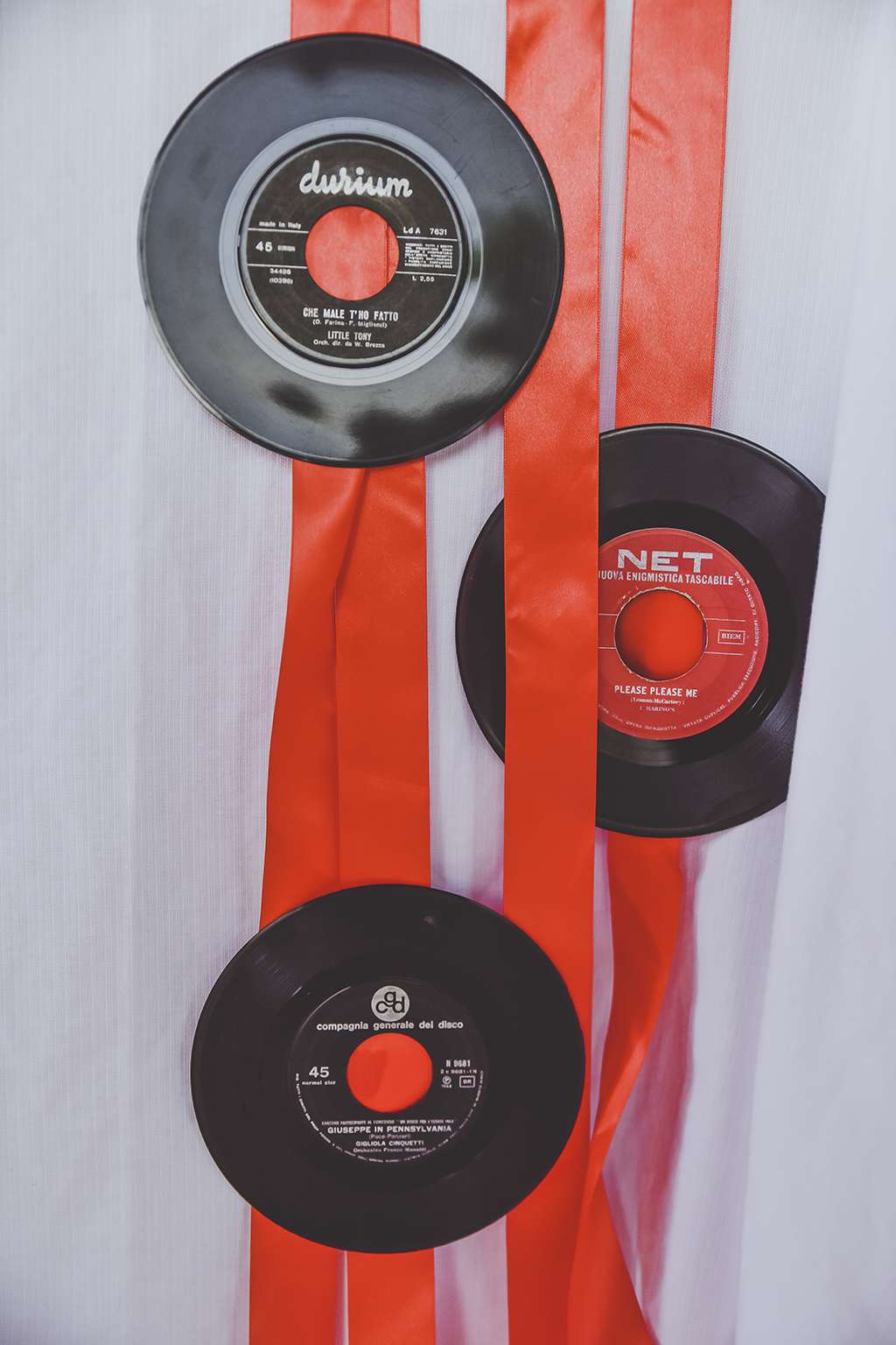 “Our biggest expense was the restaurant,” said Silvia, “but it was important to give people excellent food and top service.” Their cake was also a showstopper, designed by the couple down to every last details. Red cherries, guitars, a jukebox, red patent leather shoes – it’s every fifties lovers’ dream!