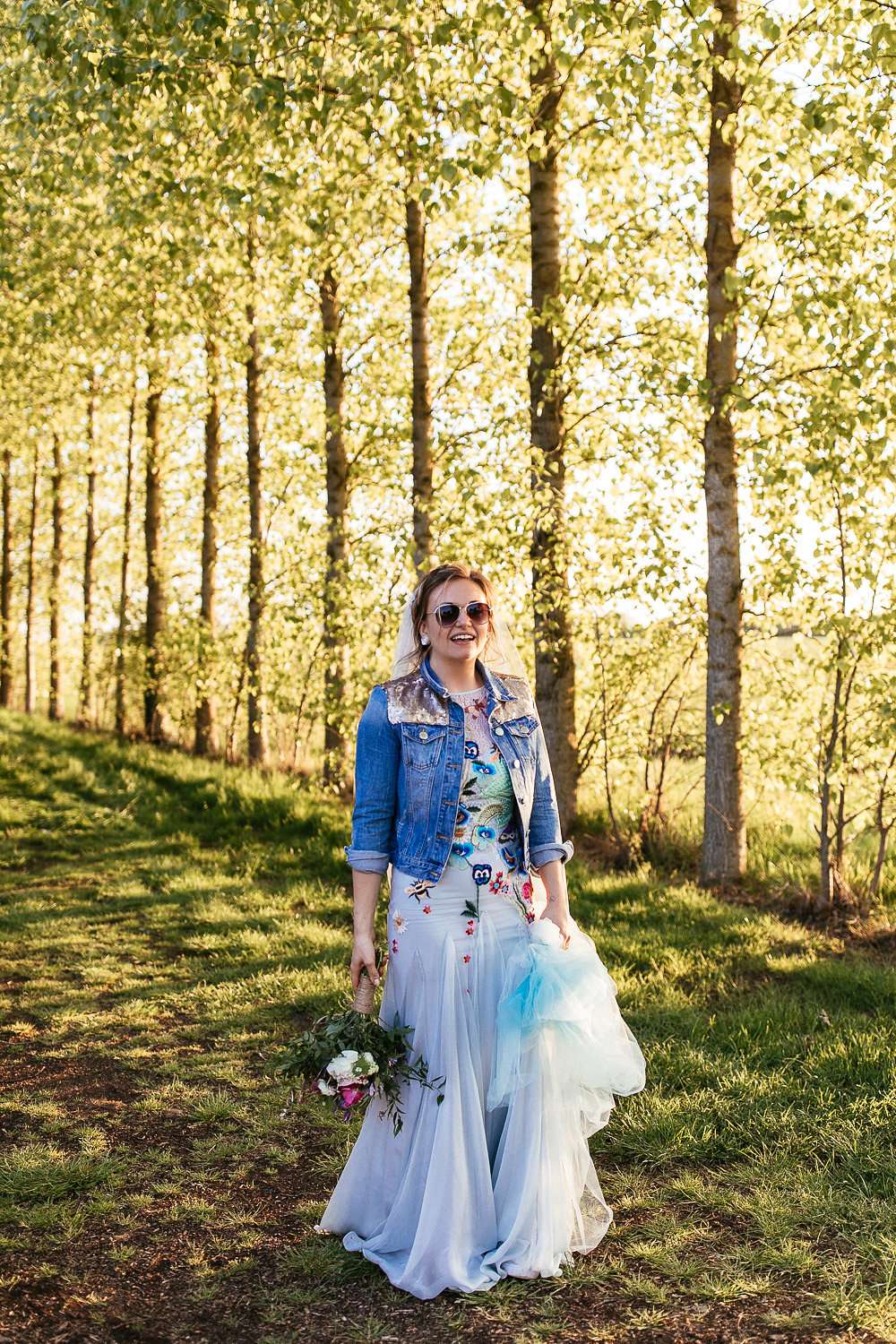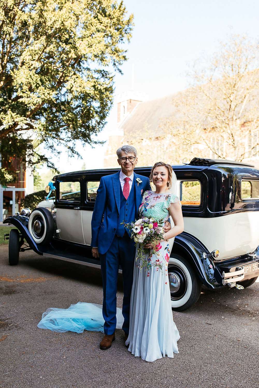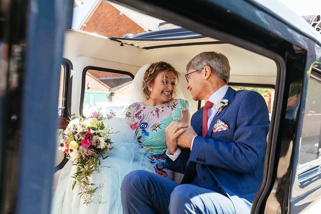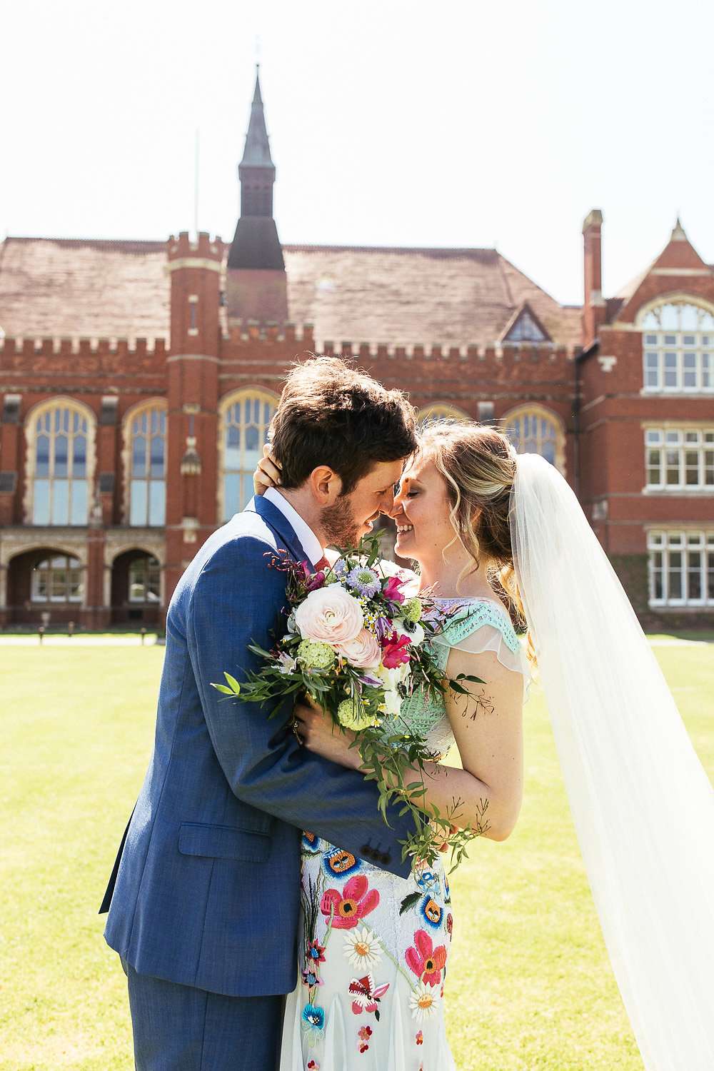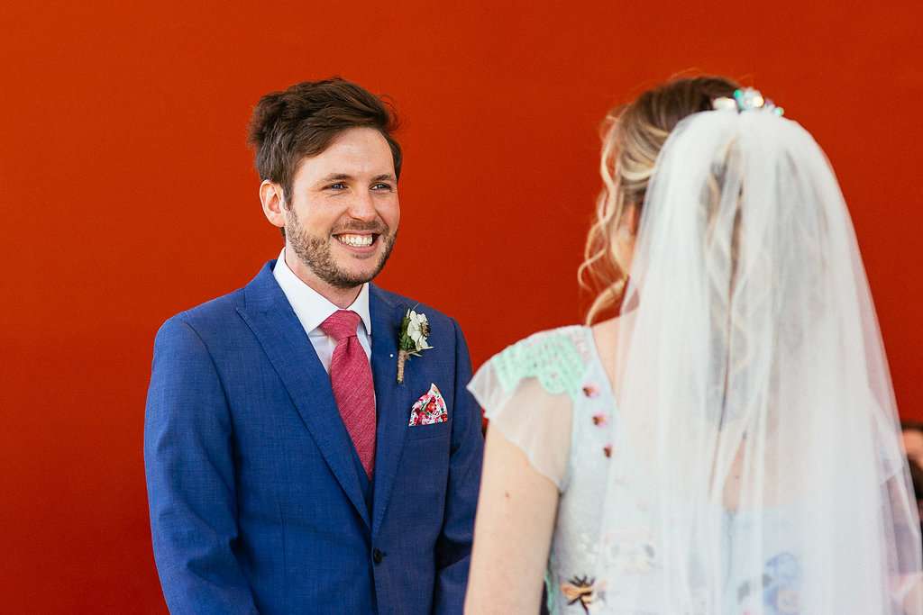 Charlie wore an embroidered Temperley dress, with a custom-dyed Rock n Roll Bride for Crown and Glory veil which faithfully matched the beautiful blue hue of the gown. “I had an amazing experience liaising with Sophie from Crown and Glory about what I wanted – Sophie was so excited about the unusual dress and it actually helped me to quiet a few fears she had about not getting married in white after a few people had raised their eyebrows.”