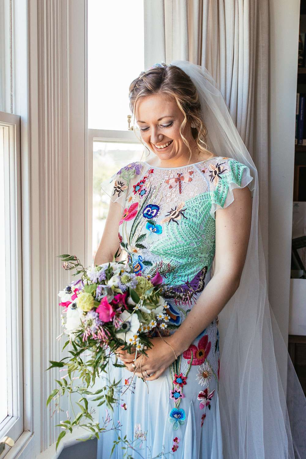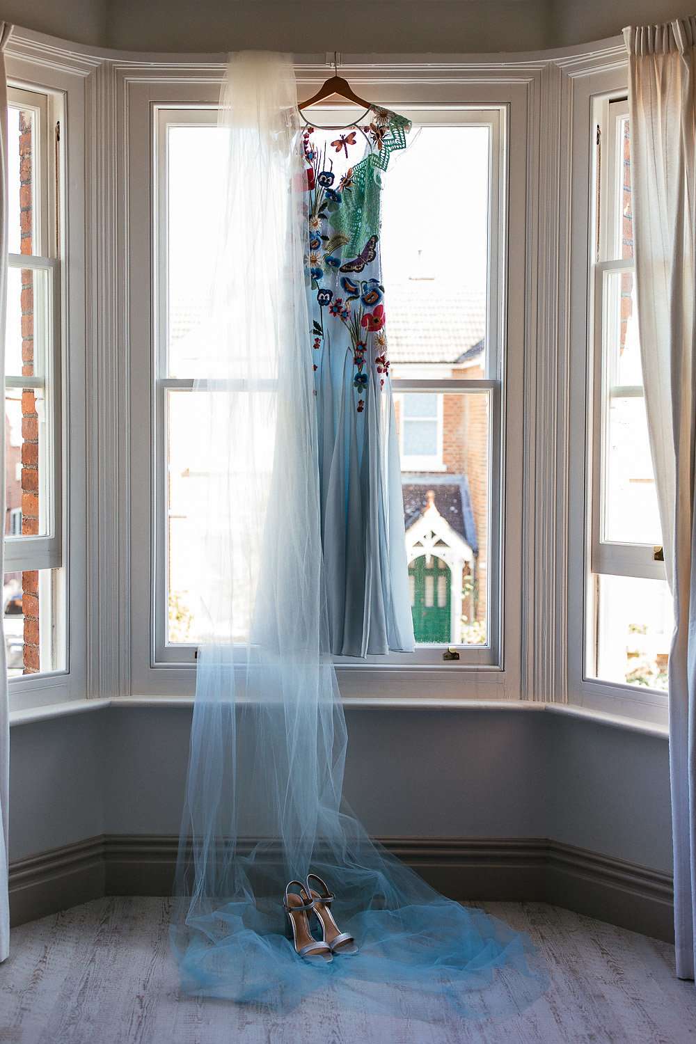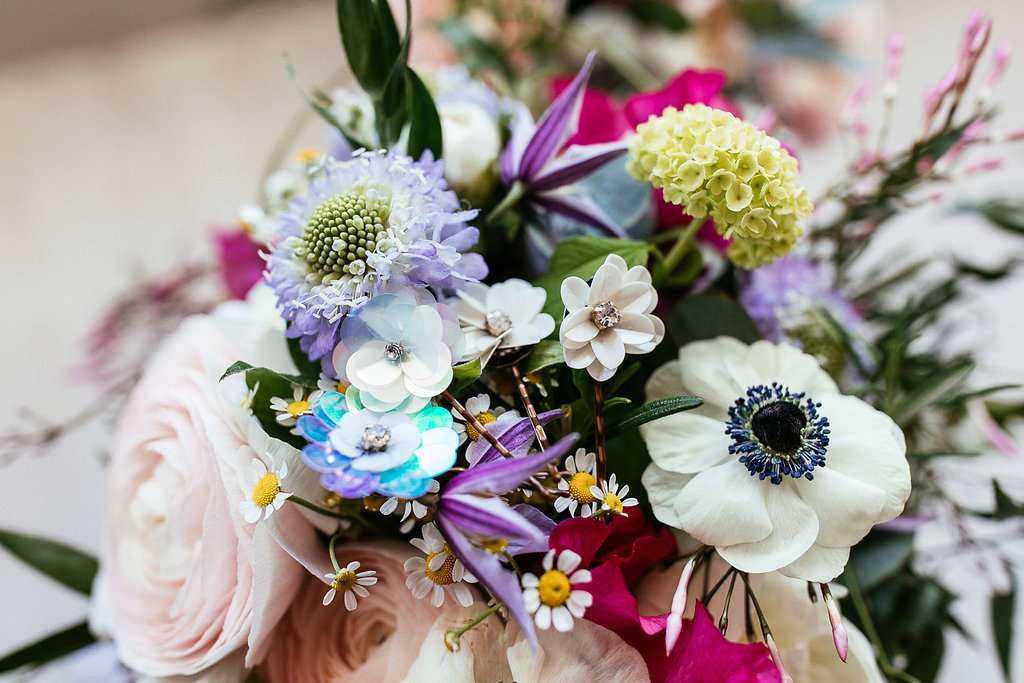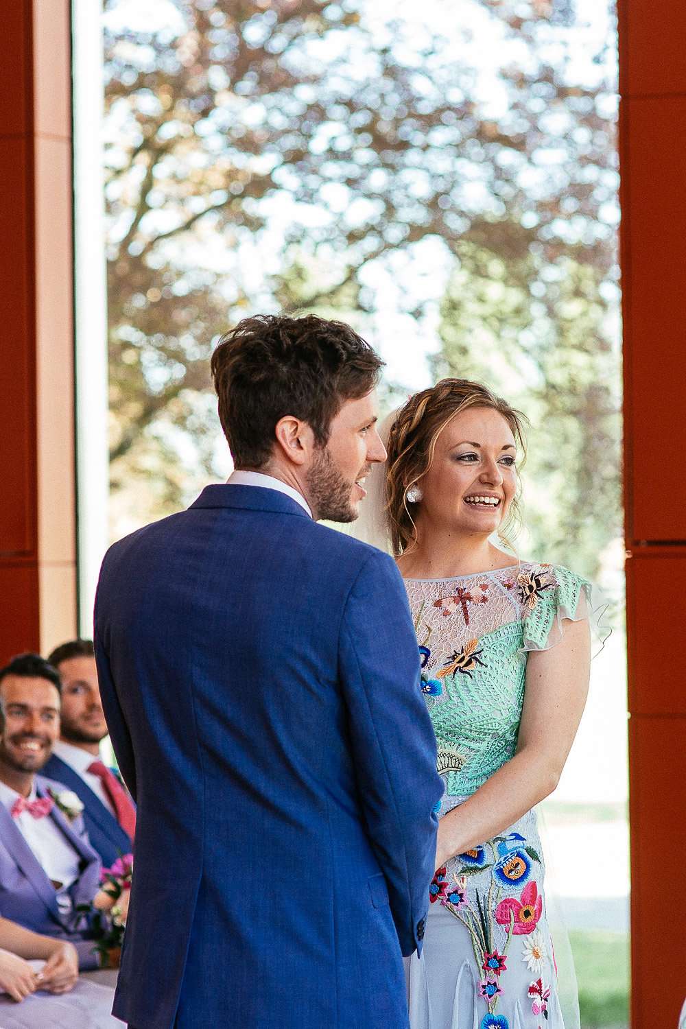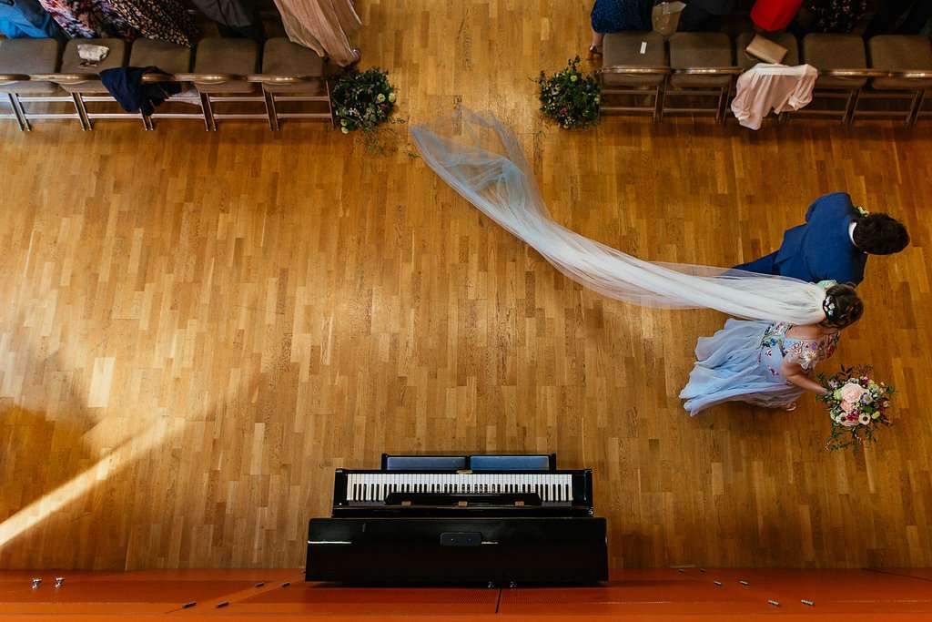 Charlie wore an embroidered Temperley dress, with a custom-dyed Rock n Roll Bride for Crown and Glory veil which faithfully matched the beautiful blue hue of the gown. “I had an amazing experience liaising with Sophie from Crown and Glory about what I wanted – Sophie was so excited about the unusual dress and it actually helped me to quiet a few fears she had about not getting married in white after a few people had raised their eyebrows.”