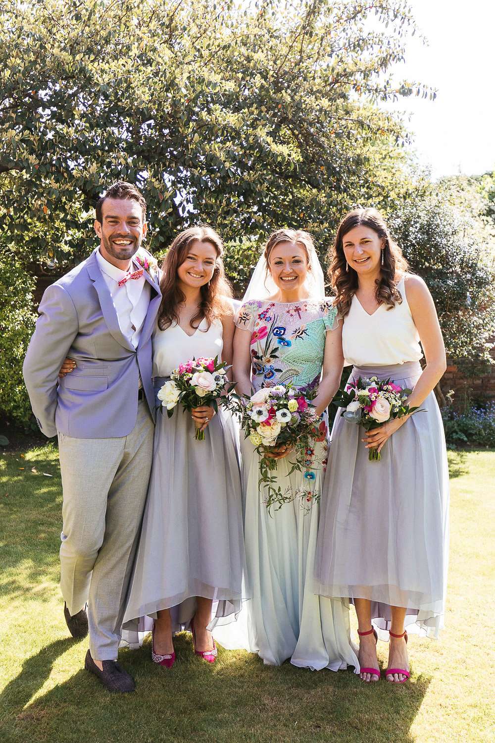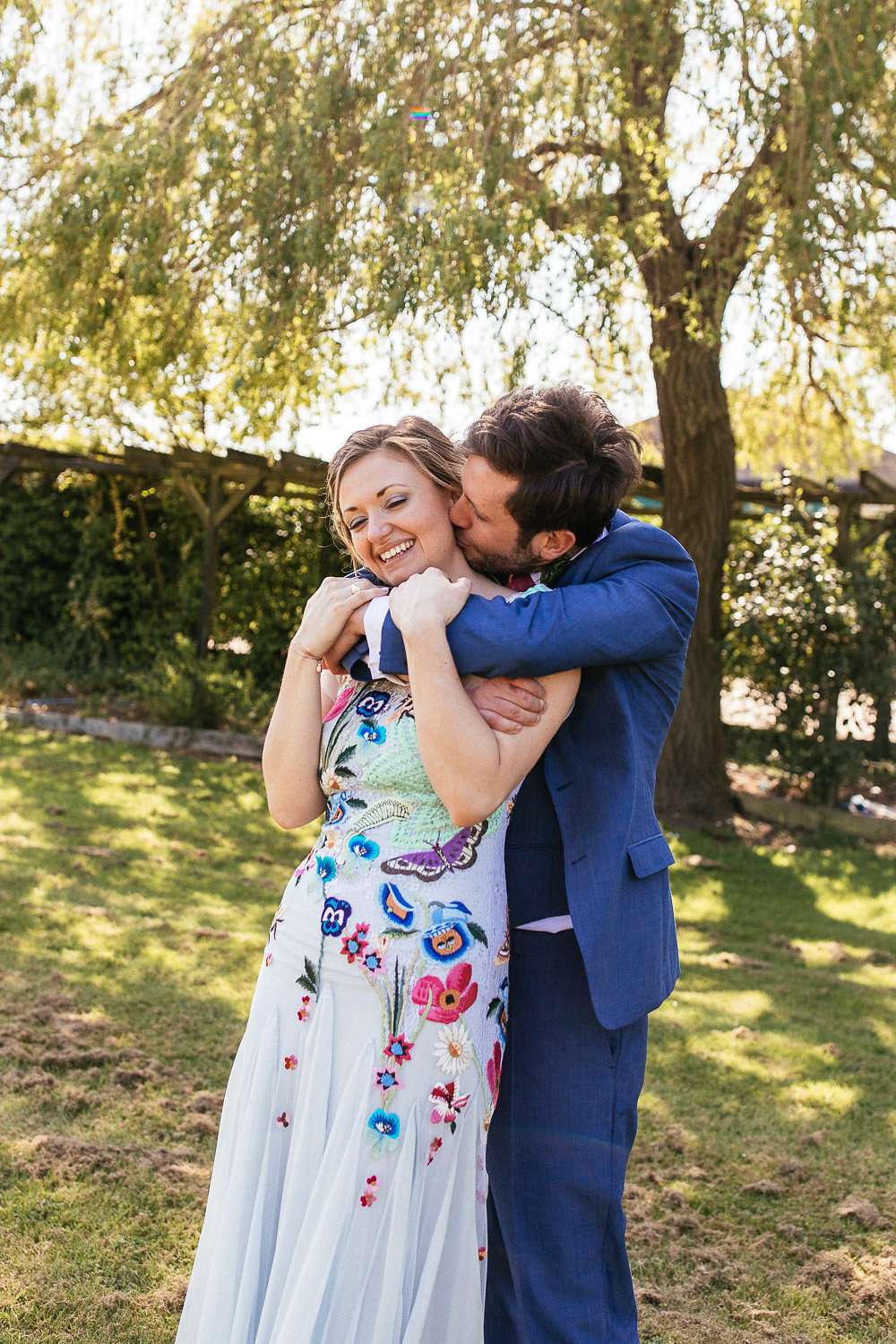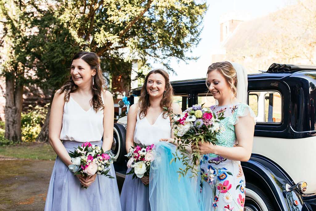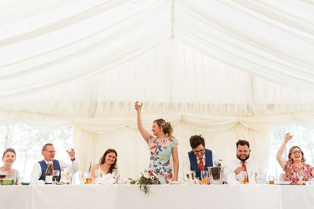 Charlie and Duncan were lucky enough to score a gem of a venue for their wedding – Outfields Farm in Bedfordshire. Usually used for holiday accommodation, they had their reception in the barn usually used as a bunk room, and the whole bridal party were able to take over the holiday cottages adjacent for the whole weekend. Many of their other guests camped on site too. As it wasn’t an advertised wedding venue, happening to belong to Charlie’s bridesman’s parents, they’re convinced they managed to achieve what they wanted from their big day for a third of the price of hosting it in a manor house or country club!